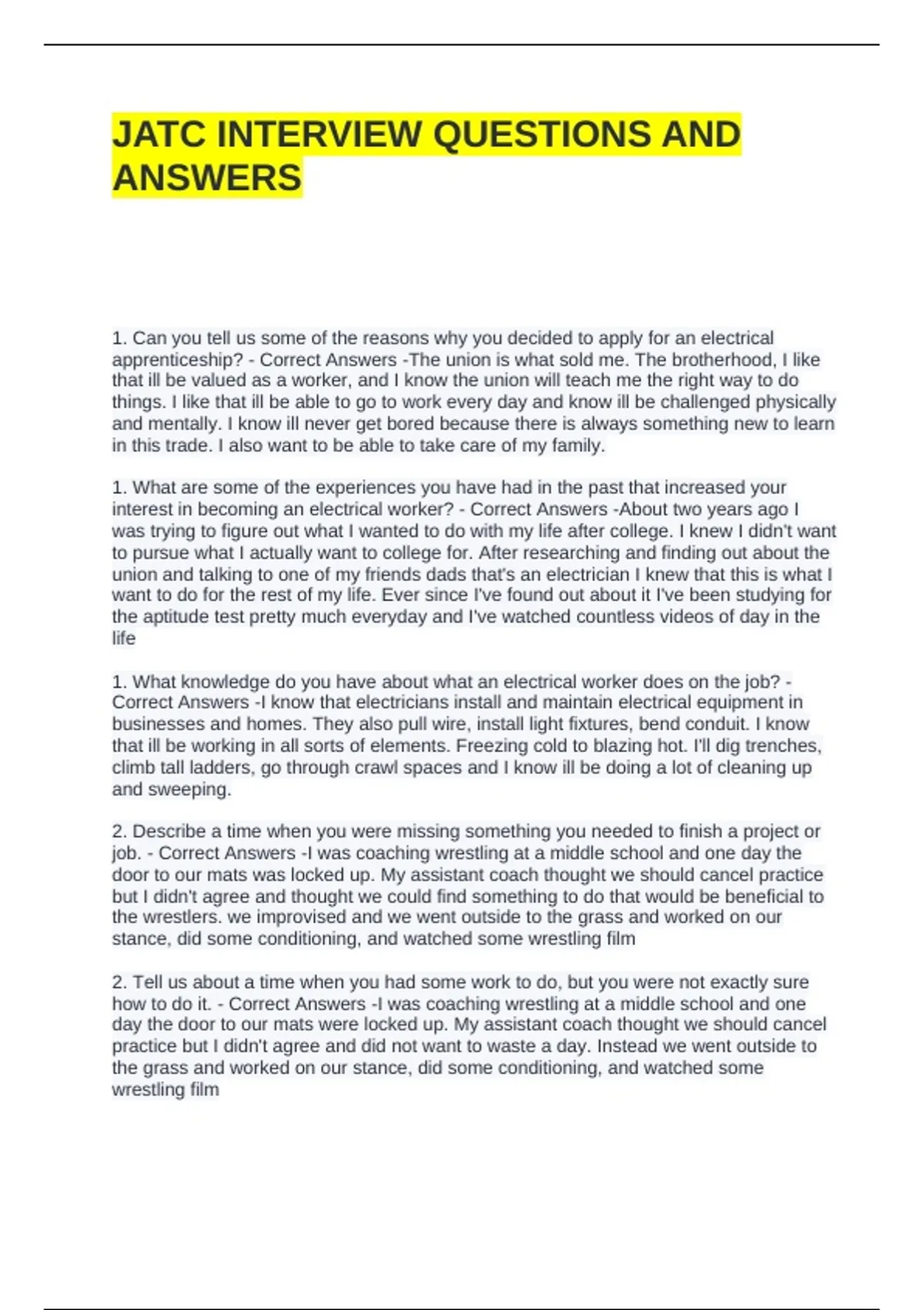 interest in becoming an electrical worker? - Correct Answers -About two years ago I