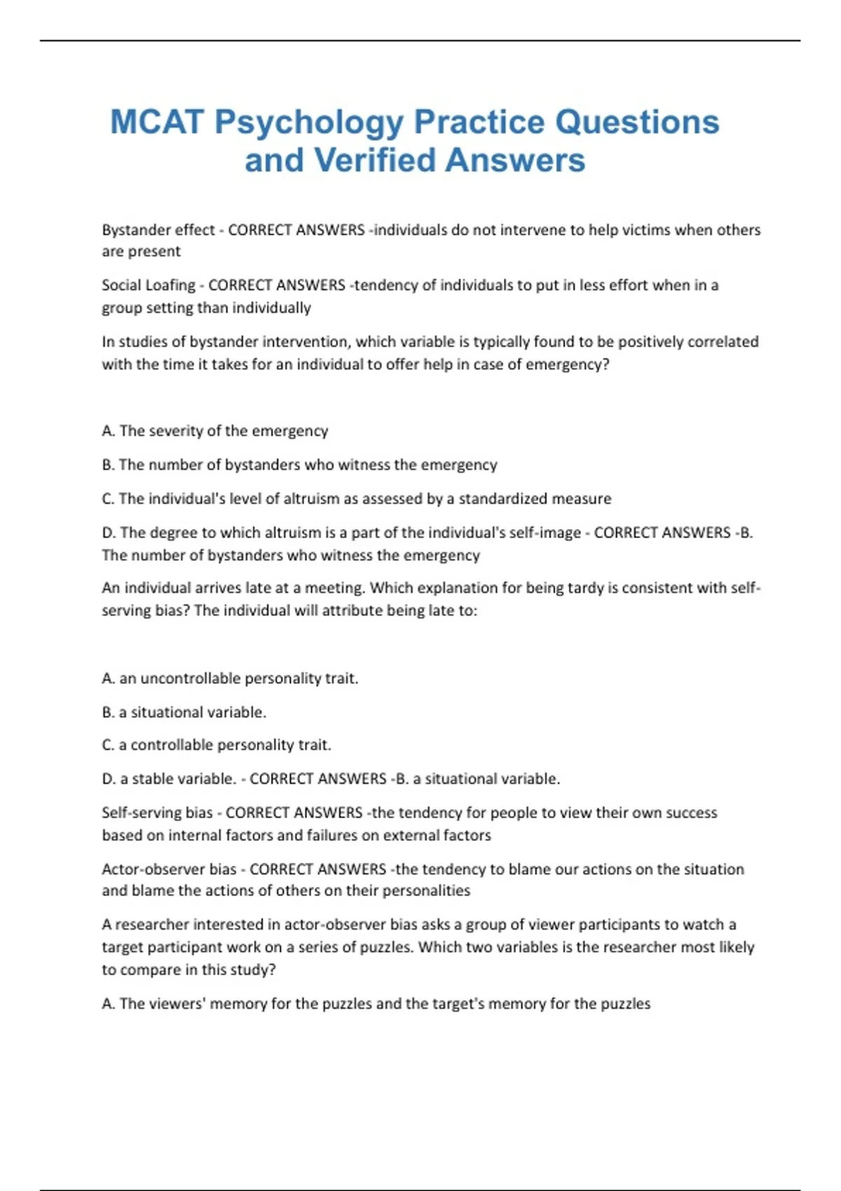 Bystander effect - CORRECT ANSWERS -individuals do not intervene to help victims when others