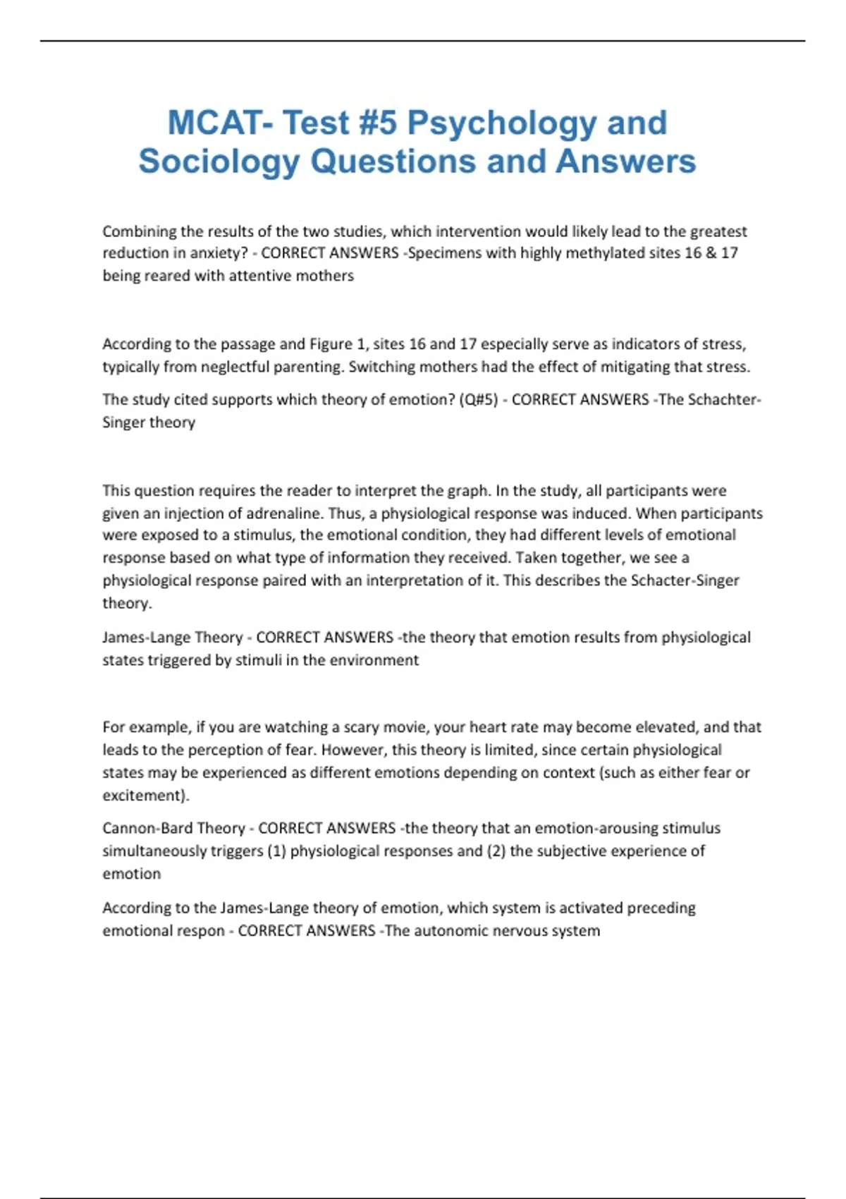 The study cited supports which theory of emotion? (Q#5) - CORRECT ANSWERS -The Schachter-