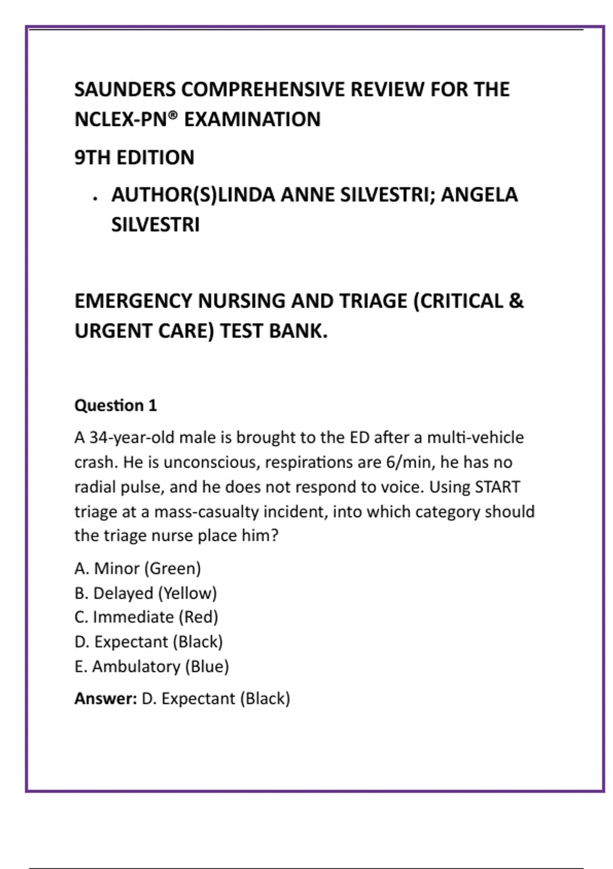 Answer: D. Expectant (Black)