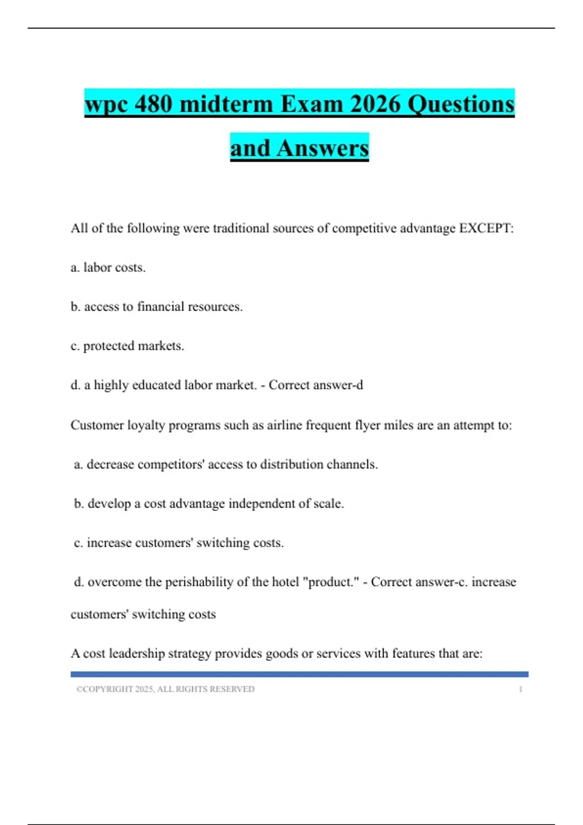 d. nonsubstitutable. - Correct answer-a- costly to imitate