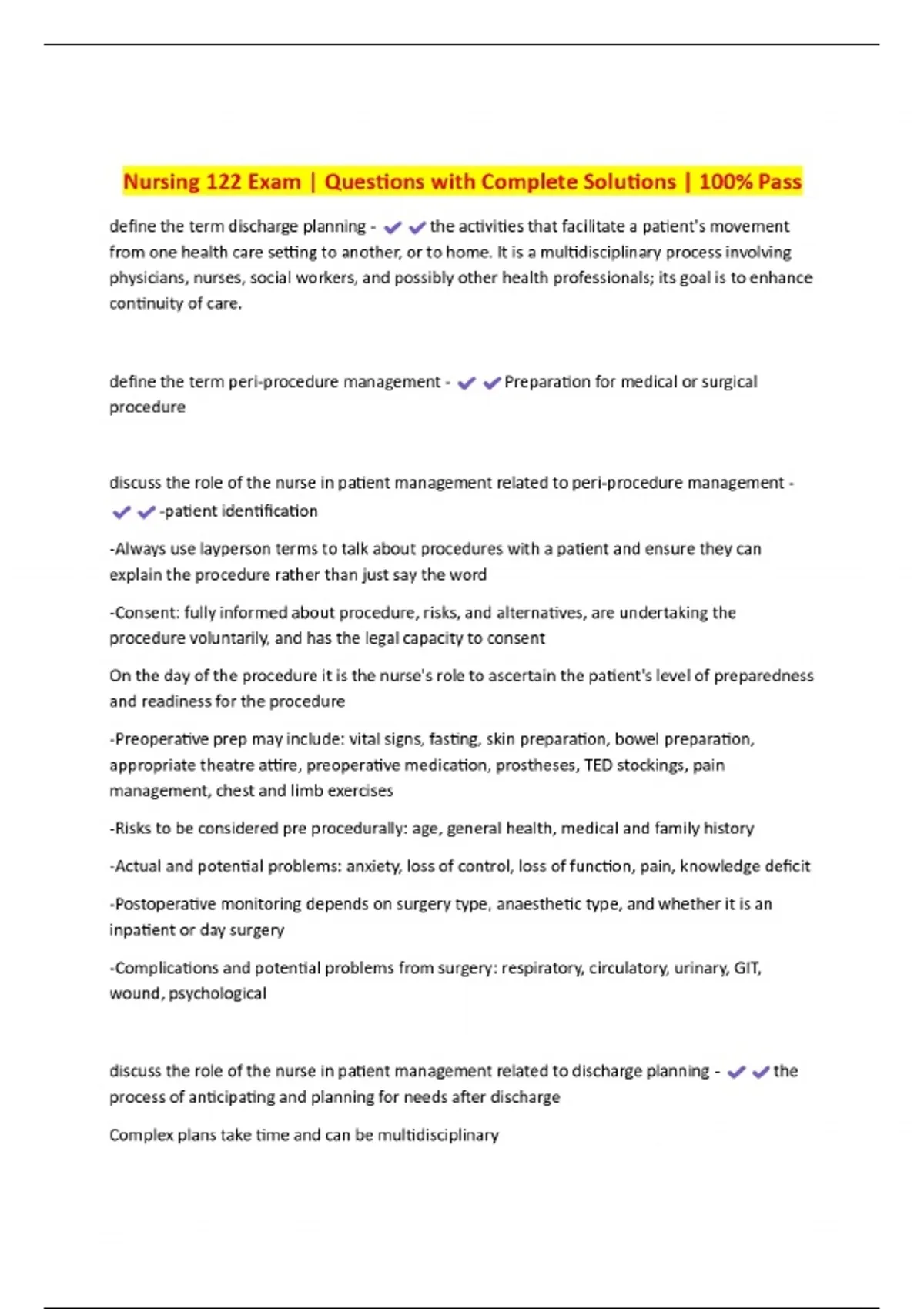 BUNDLE FOR Nursing 122 EXAMS ALL Questions with Complete Solutions
