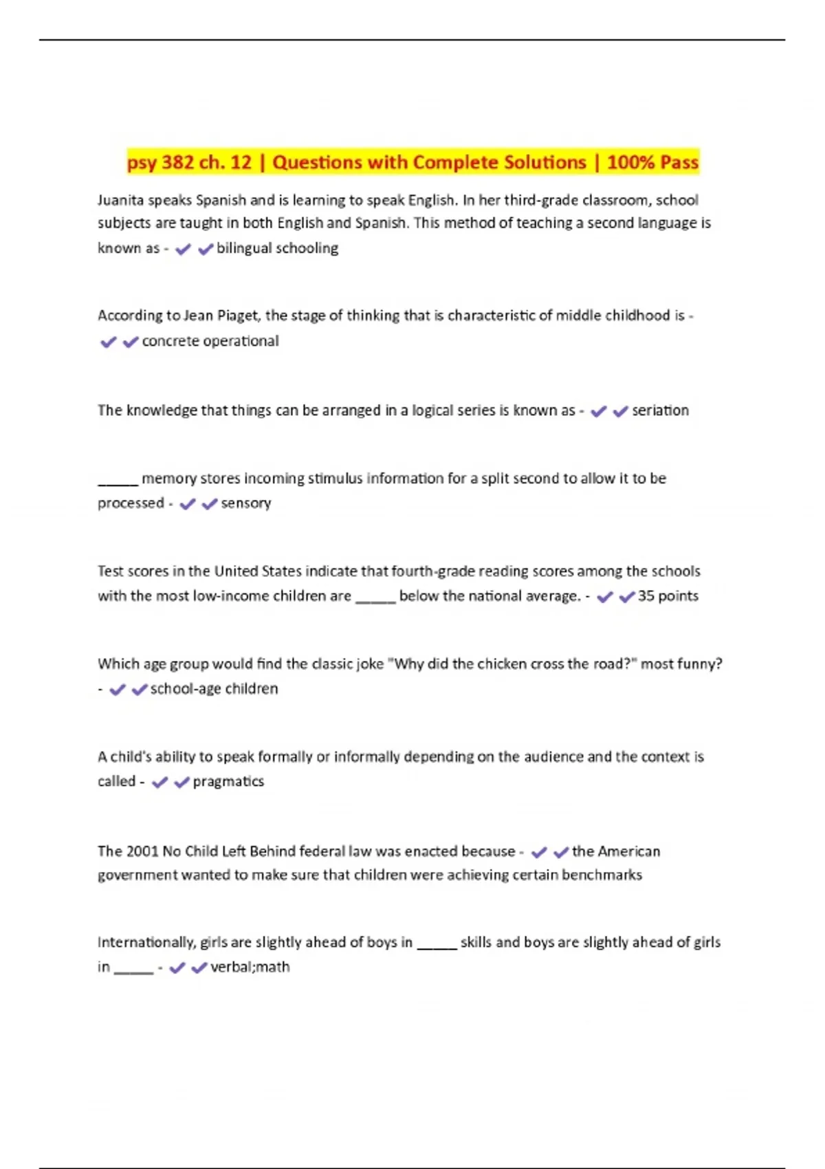 BUNDLE FOR PSY 382 EXAMS ALL Questions with Complete Solutions