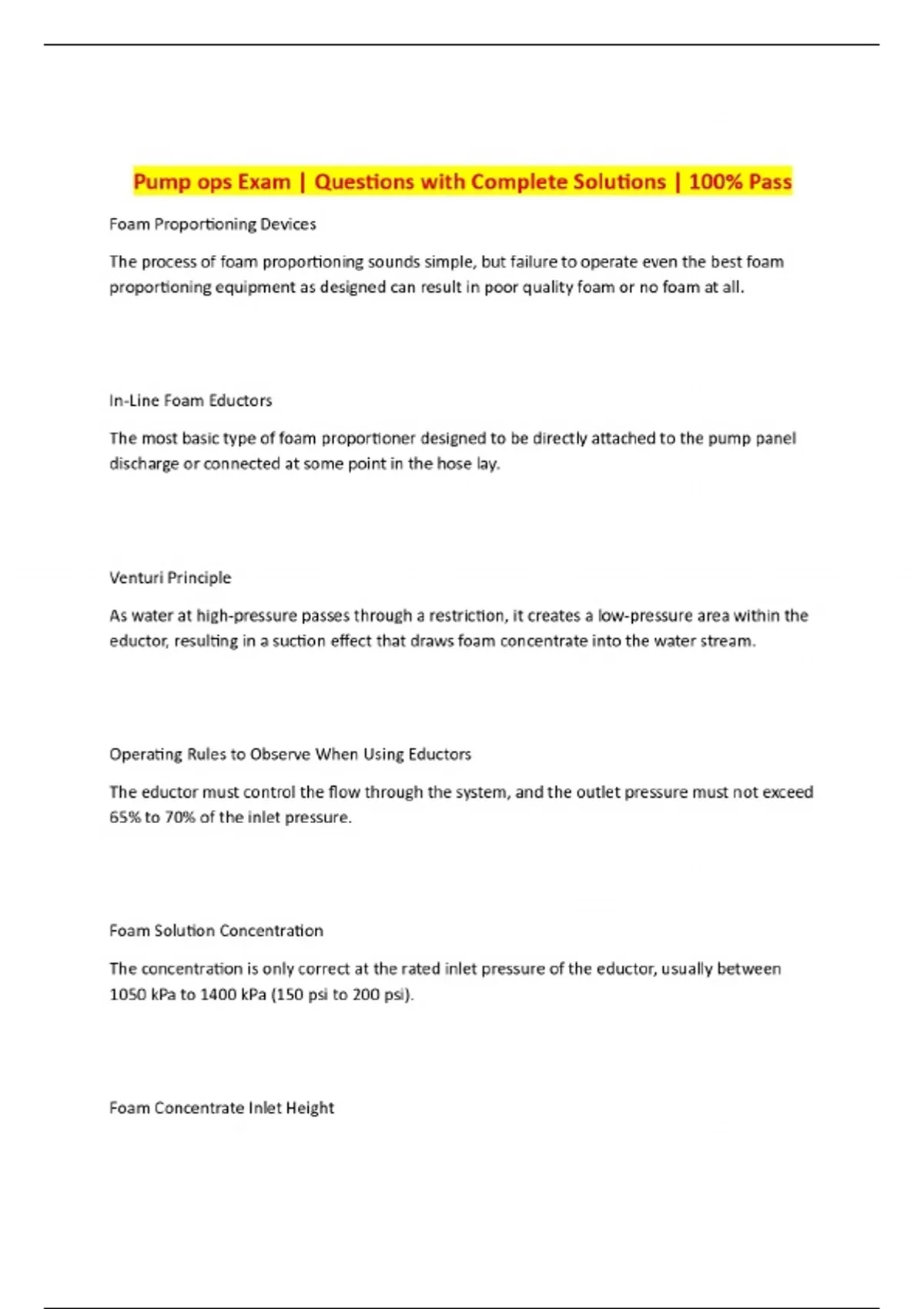 BUNDLE FOR Pump Ops EXAMS ALL Questions with Complete Solutions