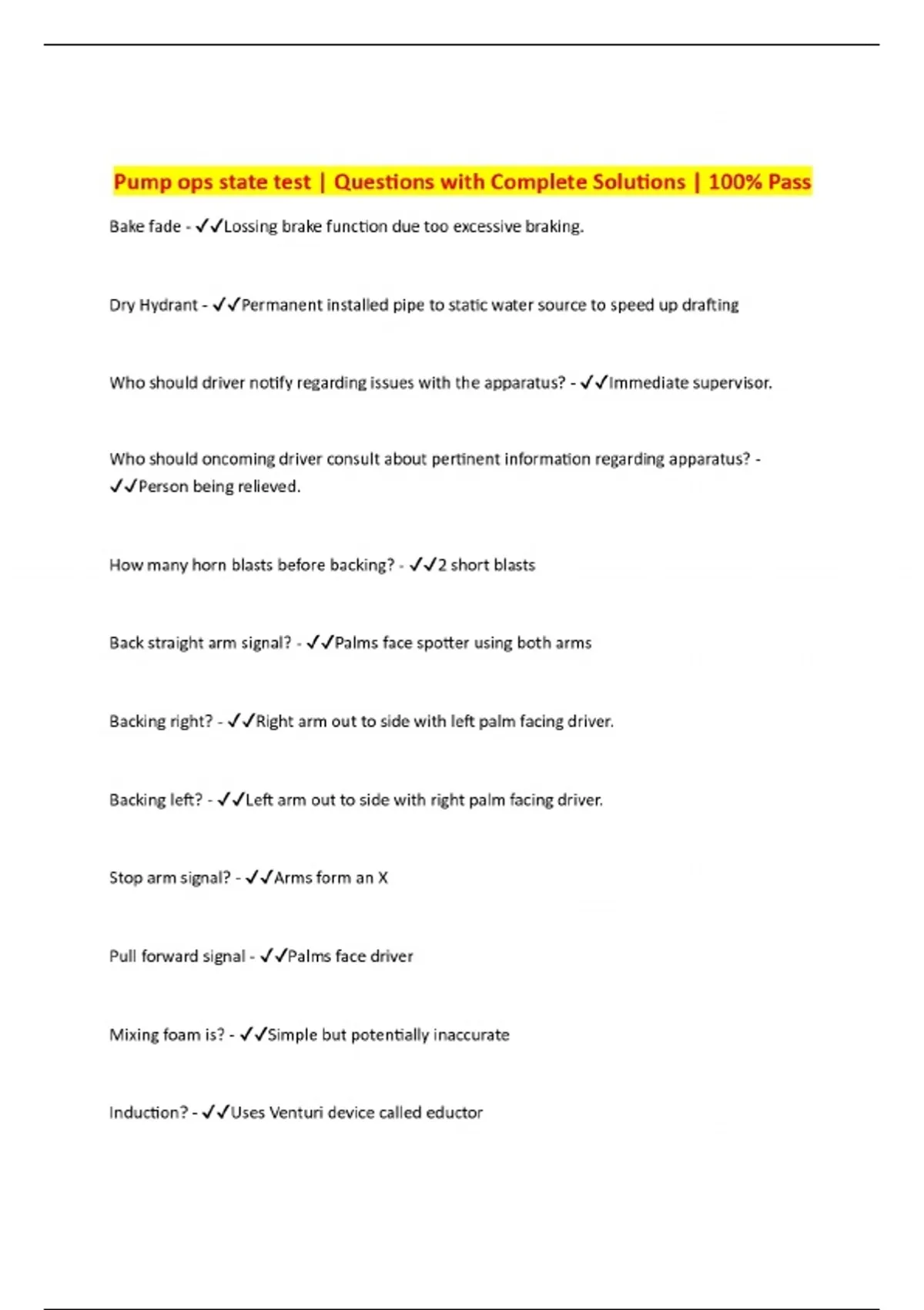 Pump ops state test | Questions with Complete Solutions | 100% Pass