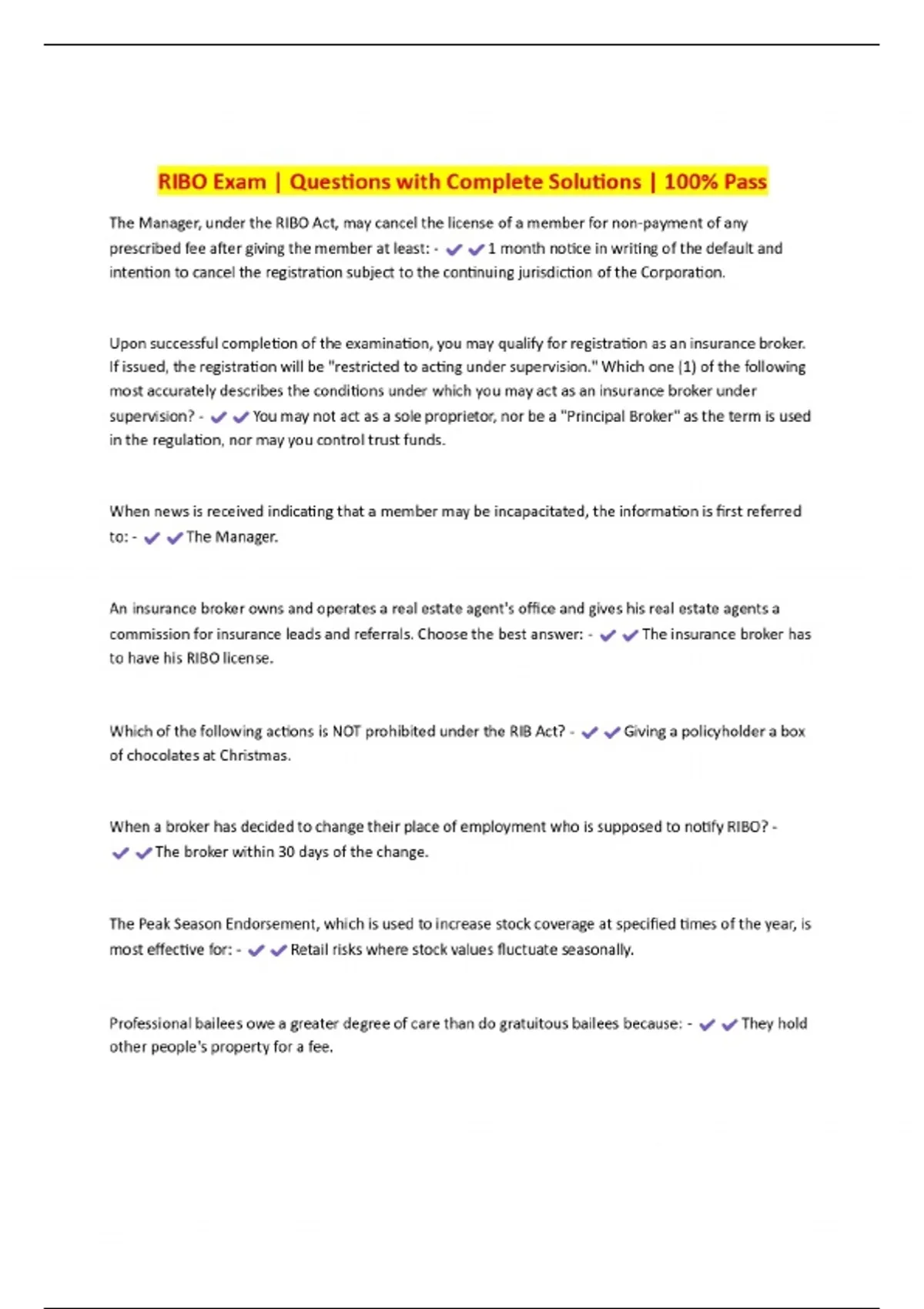 RIBO Exam | Questions with Complete Solutions | 100% Pass