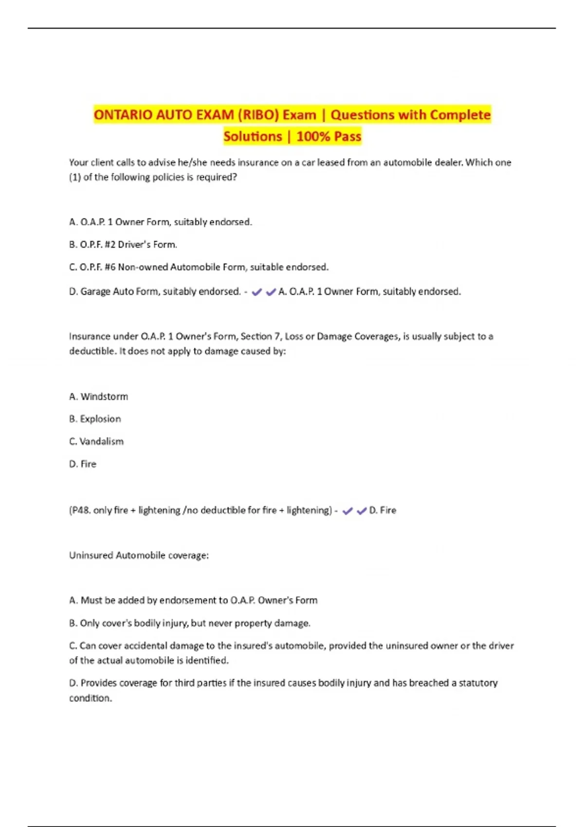 ONTARIO AUTO EXAM (RIBO) Exam | Questions with Complete Solutions | 100% Pass