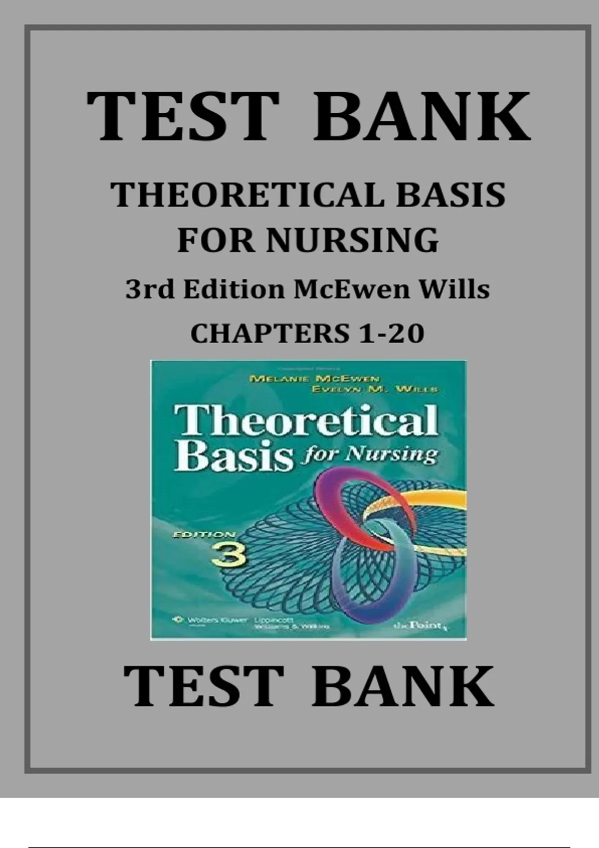 Strengthen your understanding of nursing theories and frameworks with the 2025/2026 updated Test Bank for Theoretical Basis for Nursing (3rd Edition) by Melanie McEwen. This resource provides comprehensive, concept-based questions with verified answers to help you master the foundations of nursing practice, theory development, and application in real-world clinical settings. Ideal for nursing students and educators seeking to deepen theoretical knowledge and prepare confidently for exams.