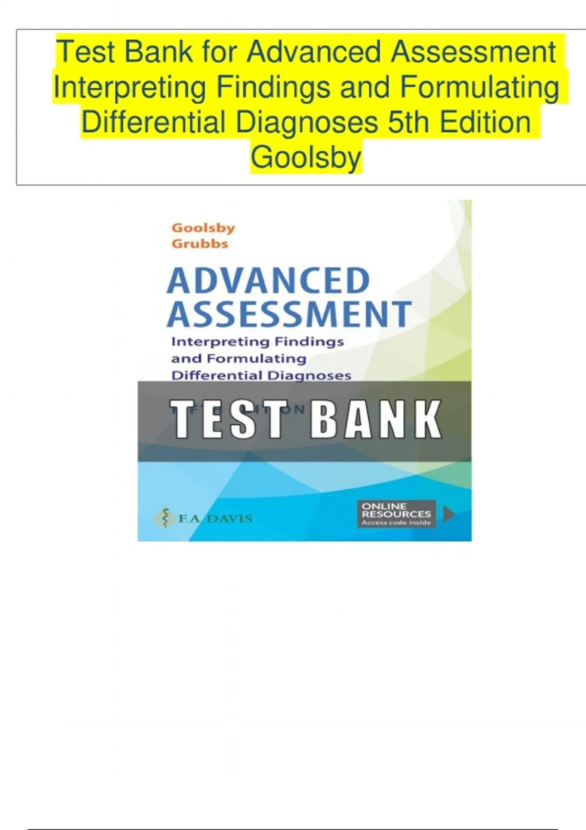 Test Bank for Advanced Assessment Interpreting Findings and Formulating Differential Diagnoses 5th Edition Goolsby