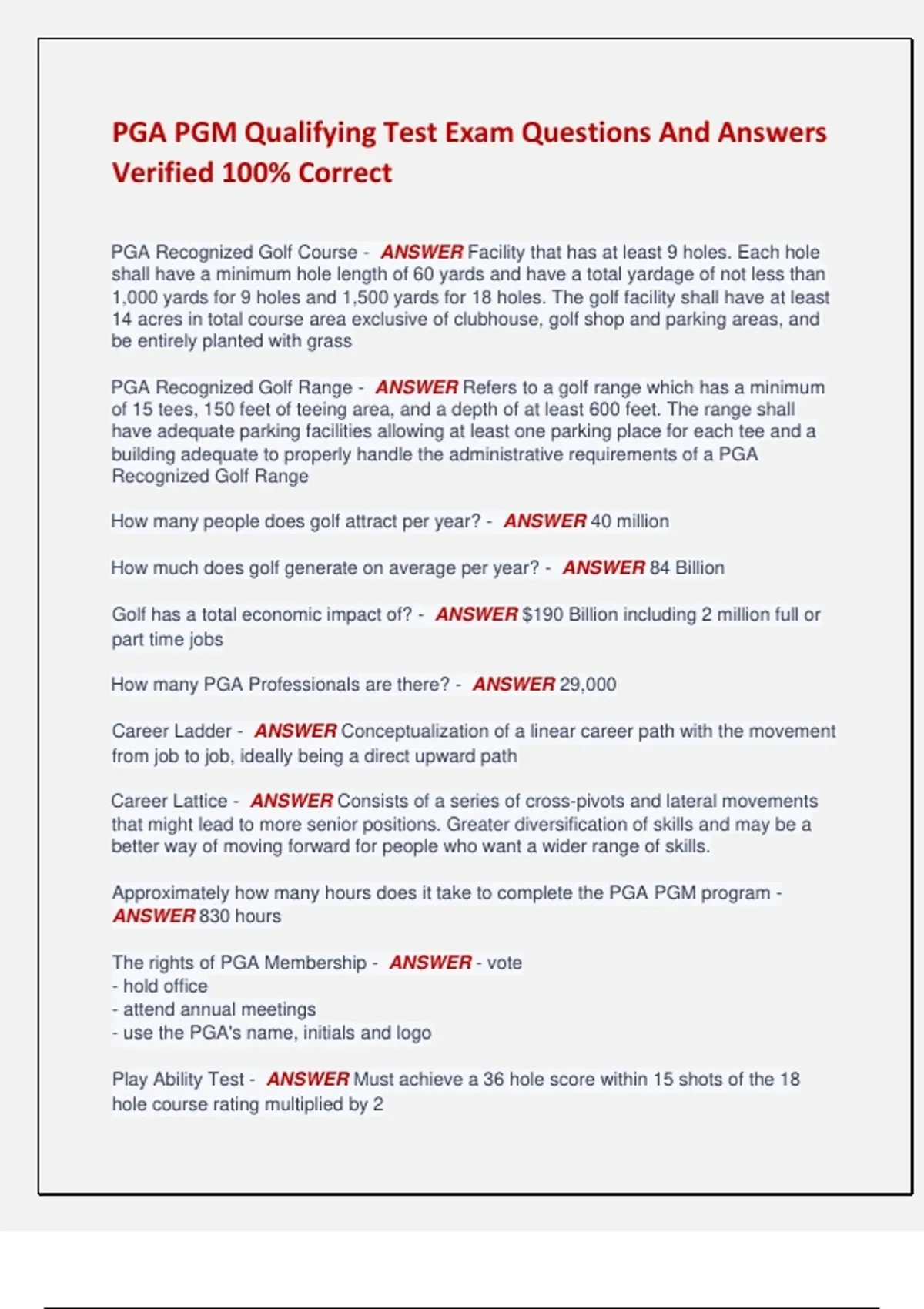 PGA PGM Qualifying Test Exam Questions And Answers Verified 100% Correct