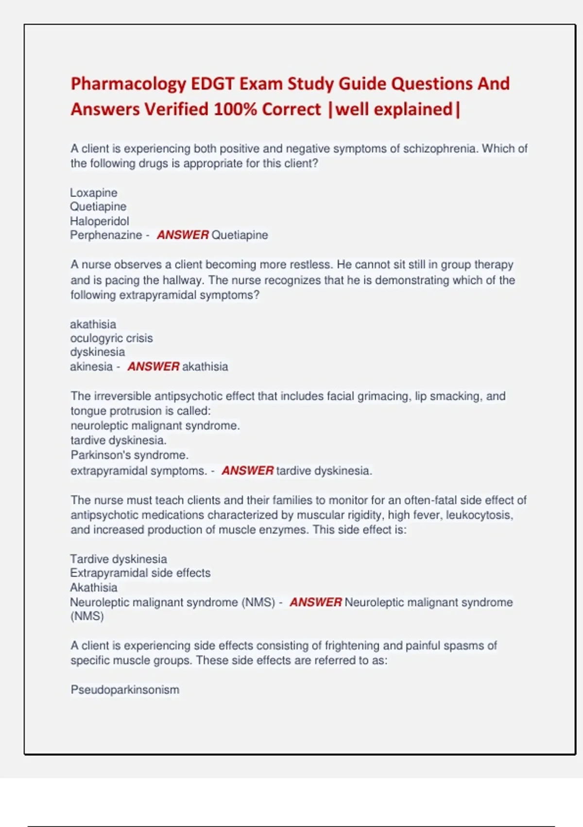 NMS - ANSWER Dystonic reactions