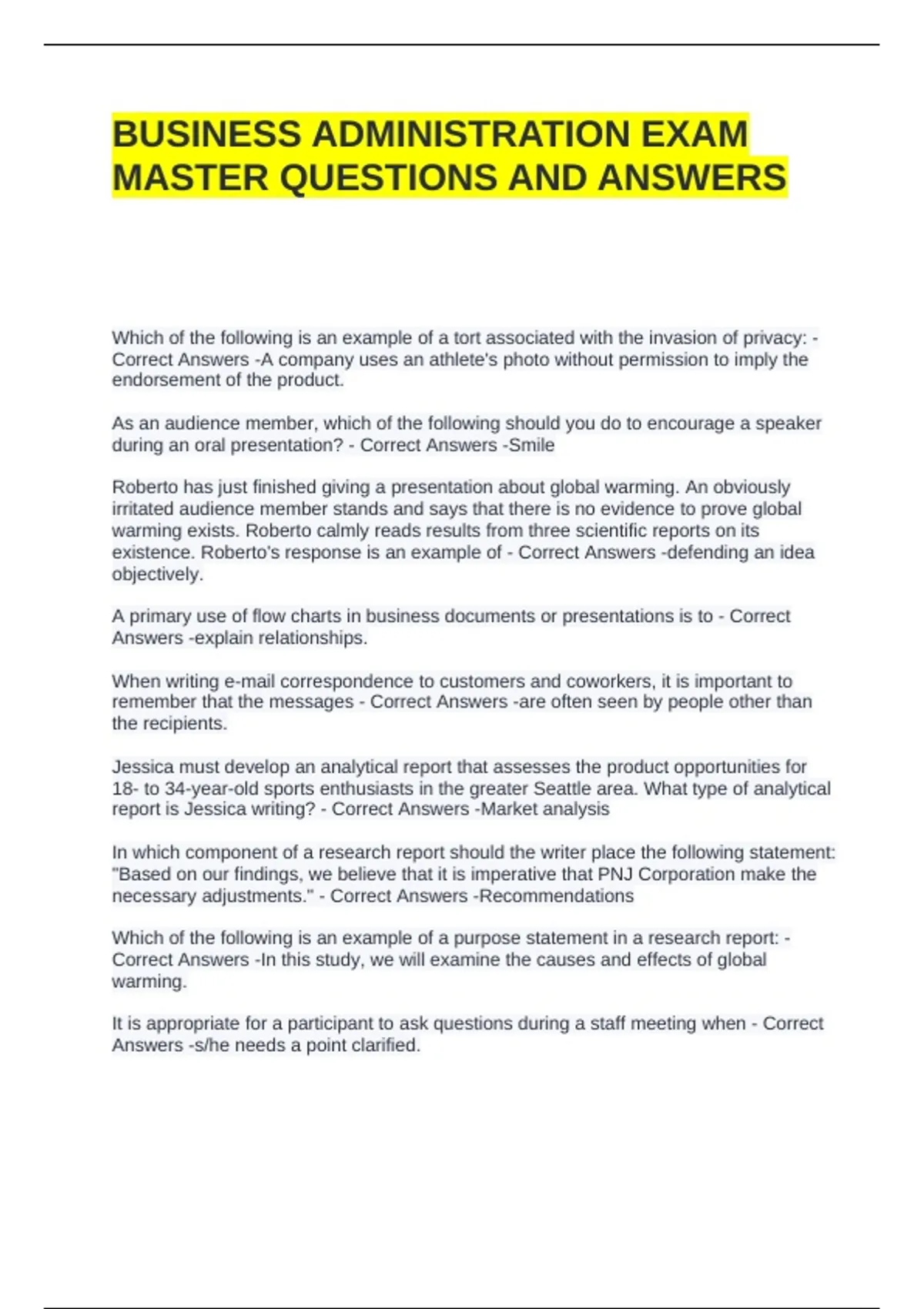BUSINESS ADMINISTRATION EXAM