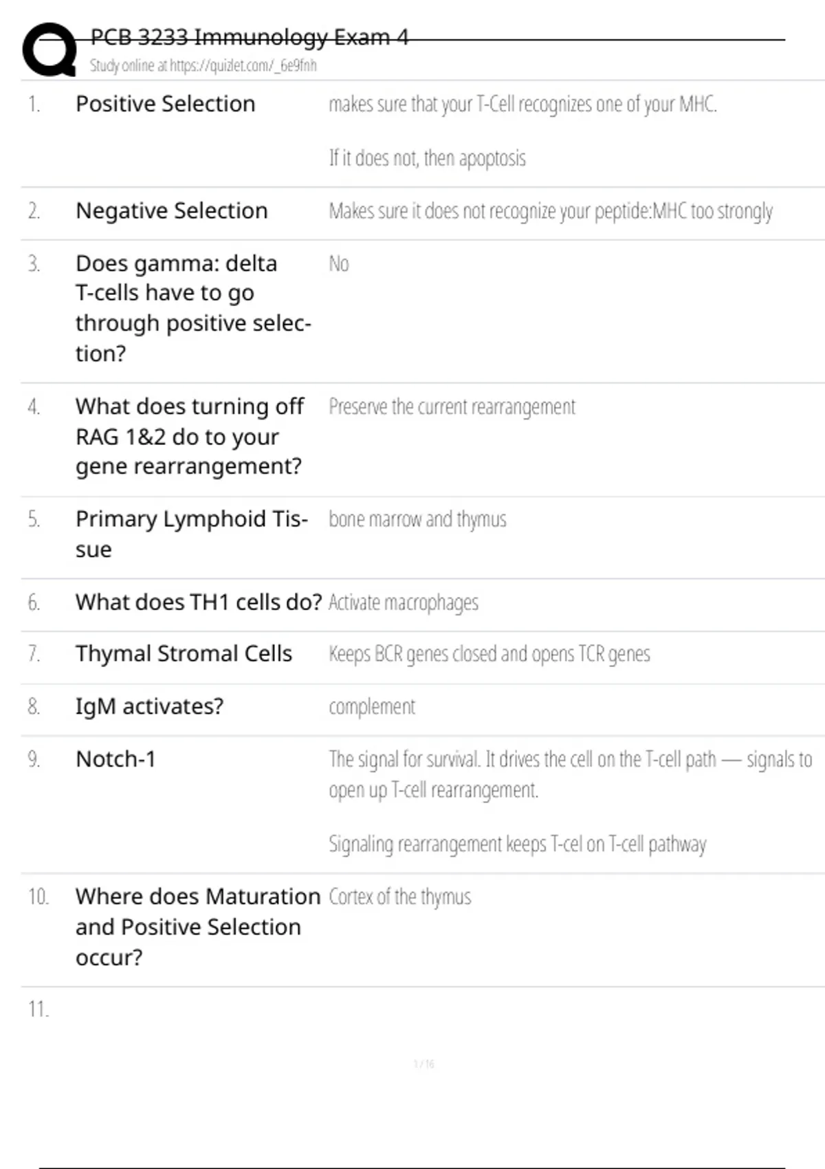 1. Positive Selection makes sure that your T-Cell recognizes one of your MHC.