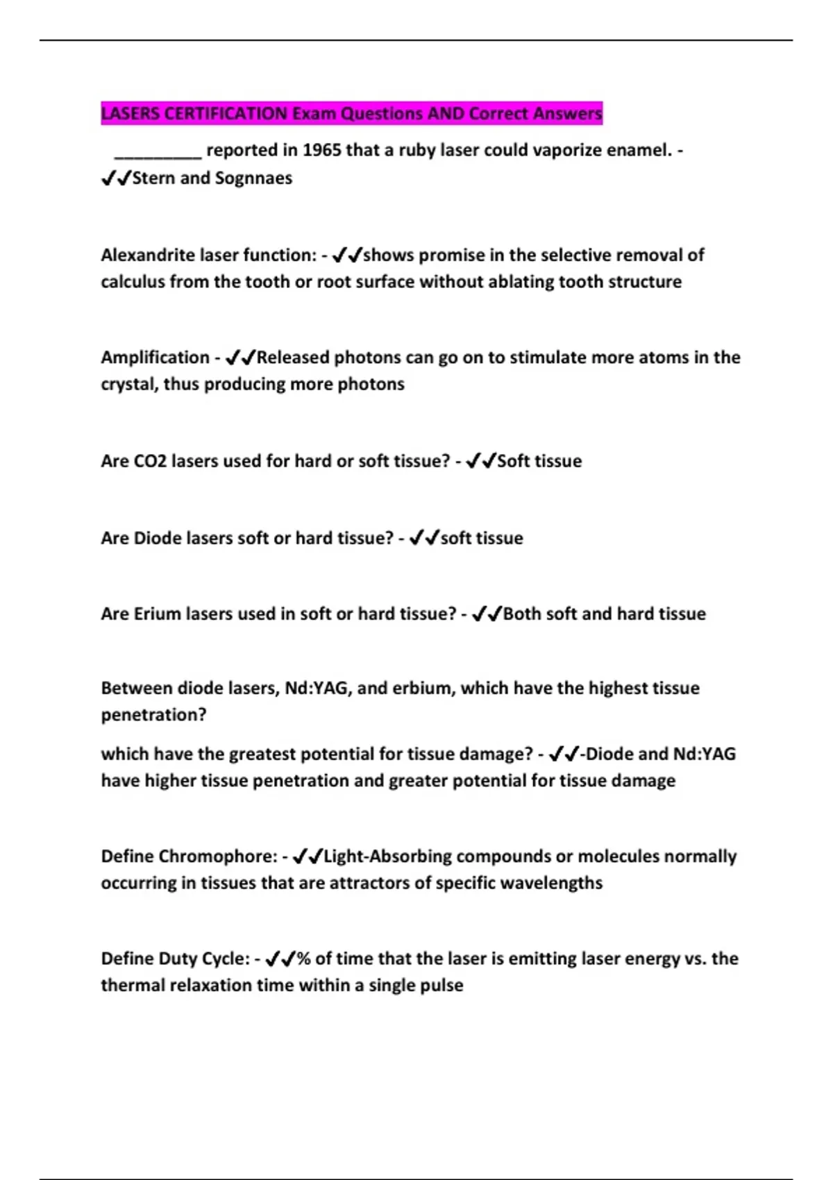 LASERS CERTIFICATION Exam Questions AND Correct Answers