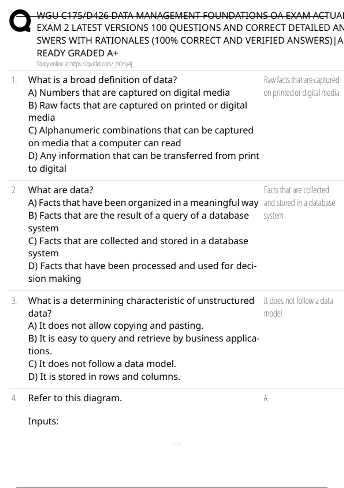 WGU C175-D426 DATA MANAGEMENT FOUNDATIONS OA EXAM ACTUAL EXAM 2 LATEST VERSIONS 200 QUESTIONS AND CORRECT VERIFIED ANSWERS)-ALREADY GRADED A