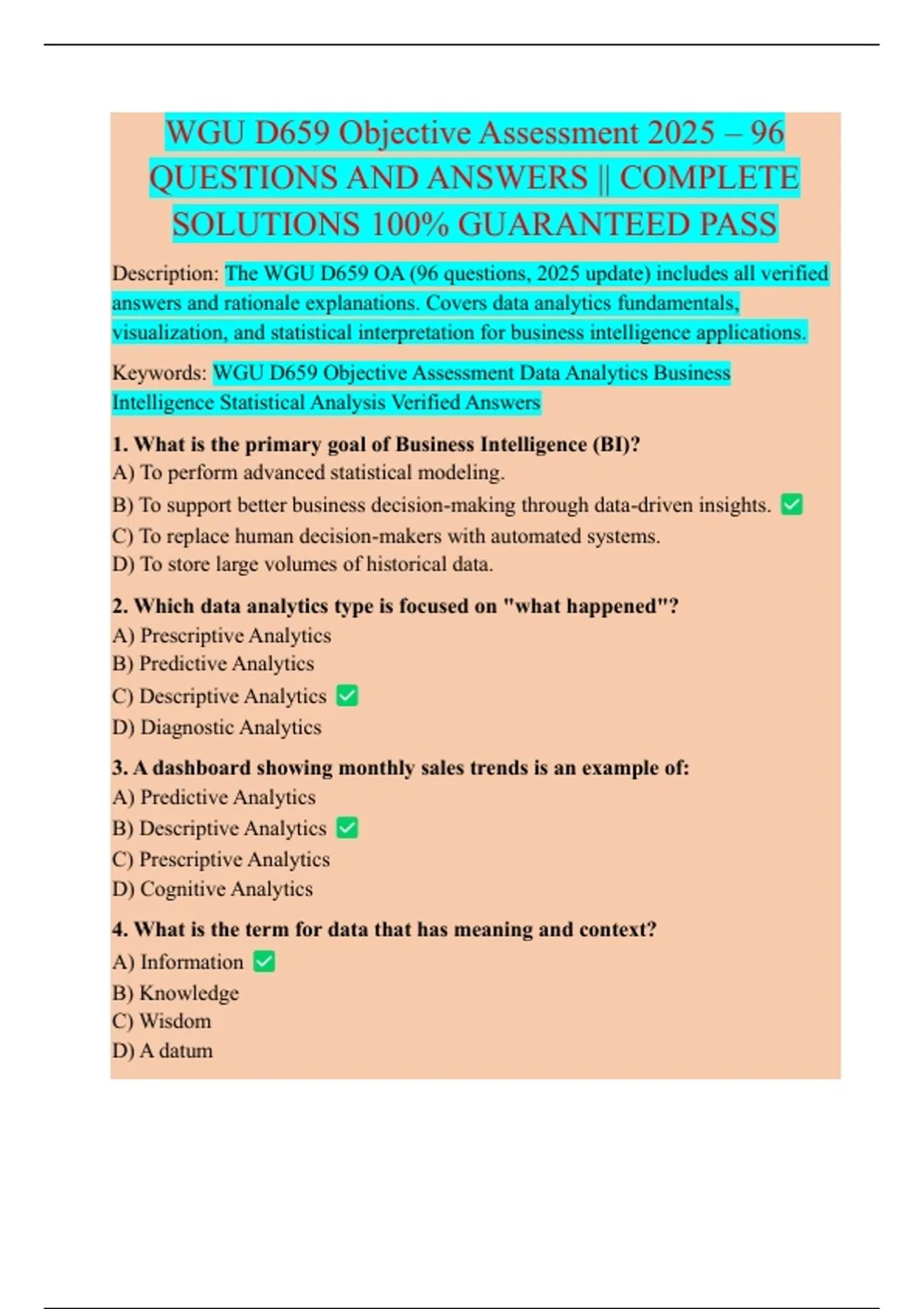 Keywords: WGU D659 Objective Assessment Data Analytics Business