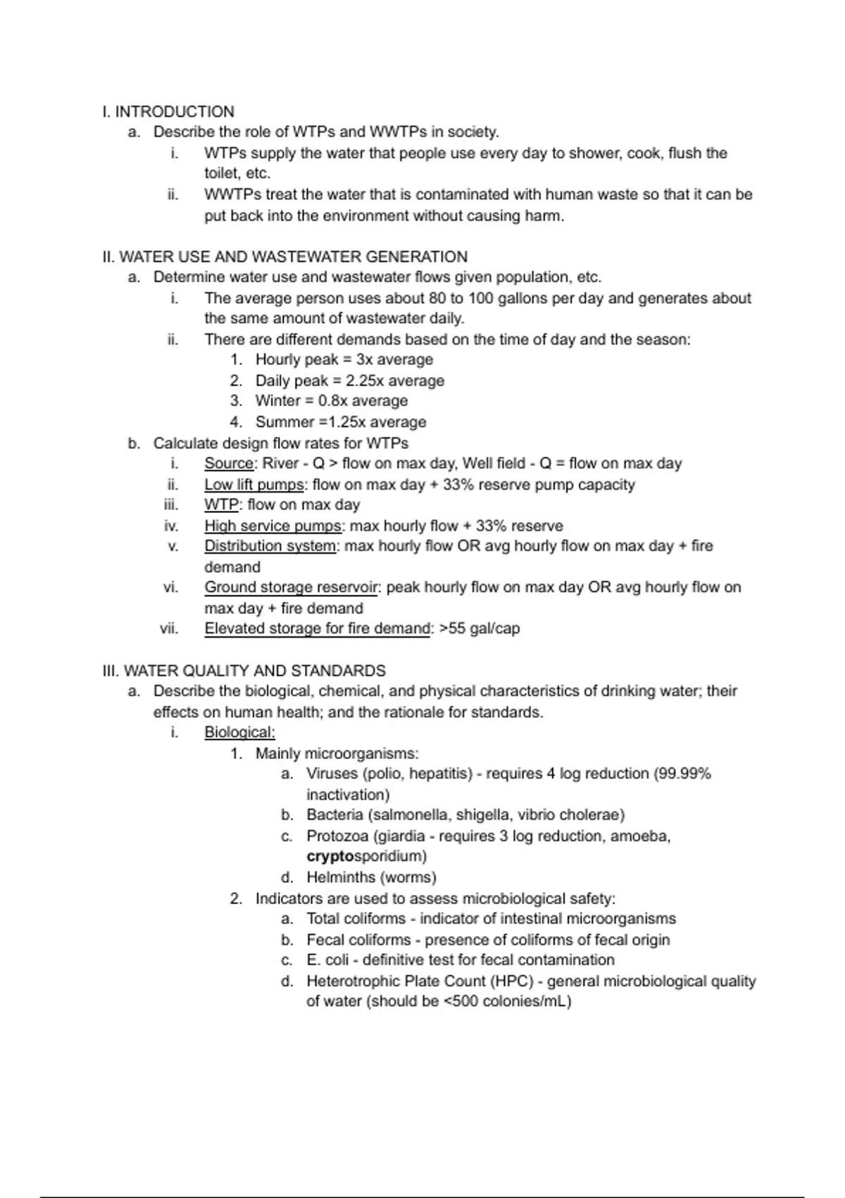 a.​ Describe the biological, chemical, and physical characteristics of drinking water; their