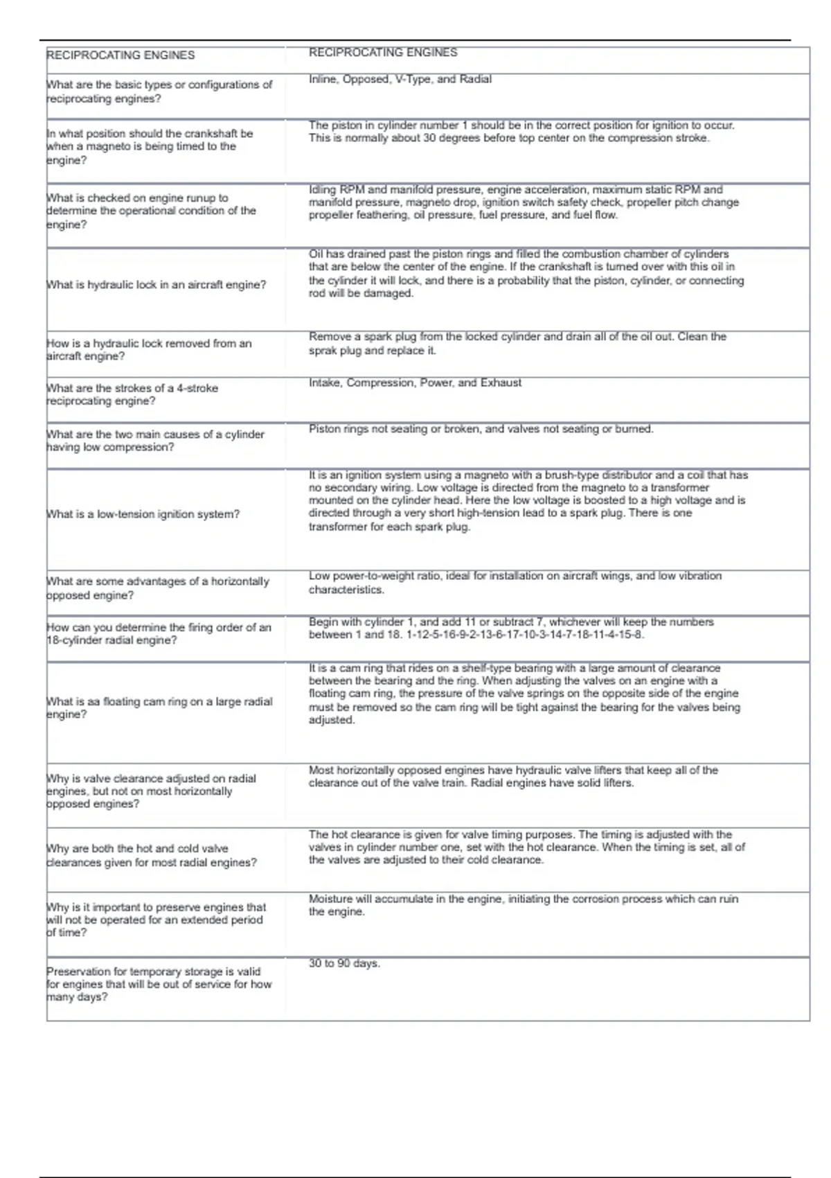 clearances given for most radial engines? the valves are adjusted to their cold clearance.
