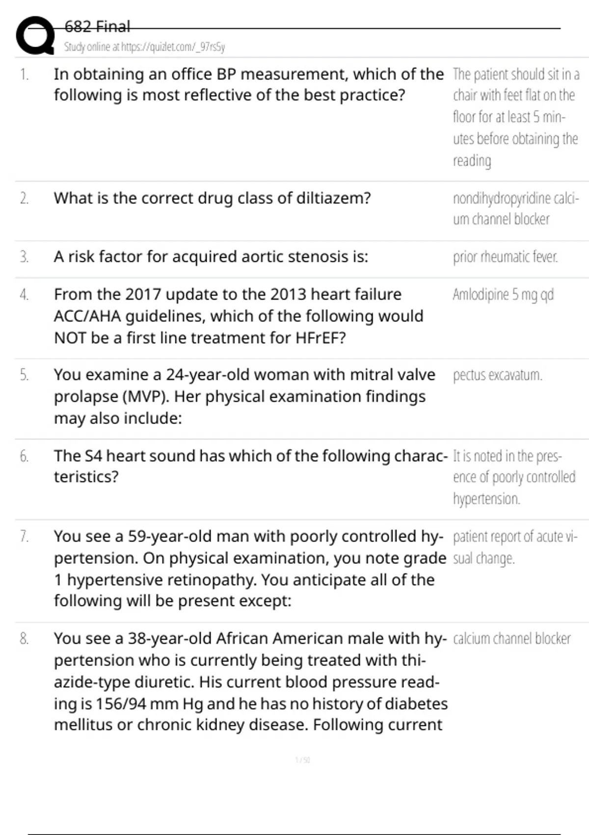 1. In obtaining an office BP measurement, which of the The patient should sit in a