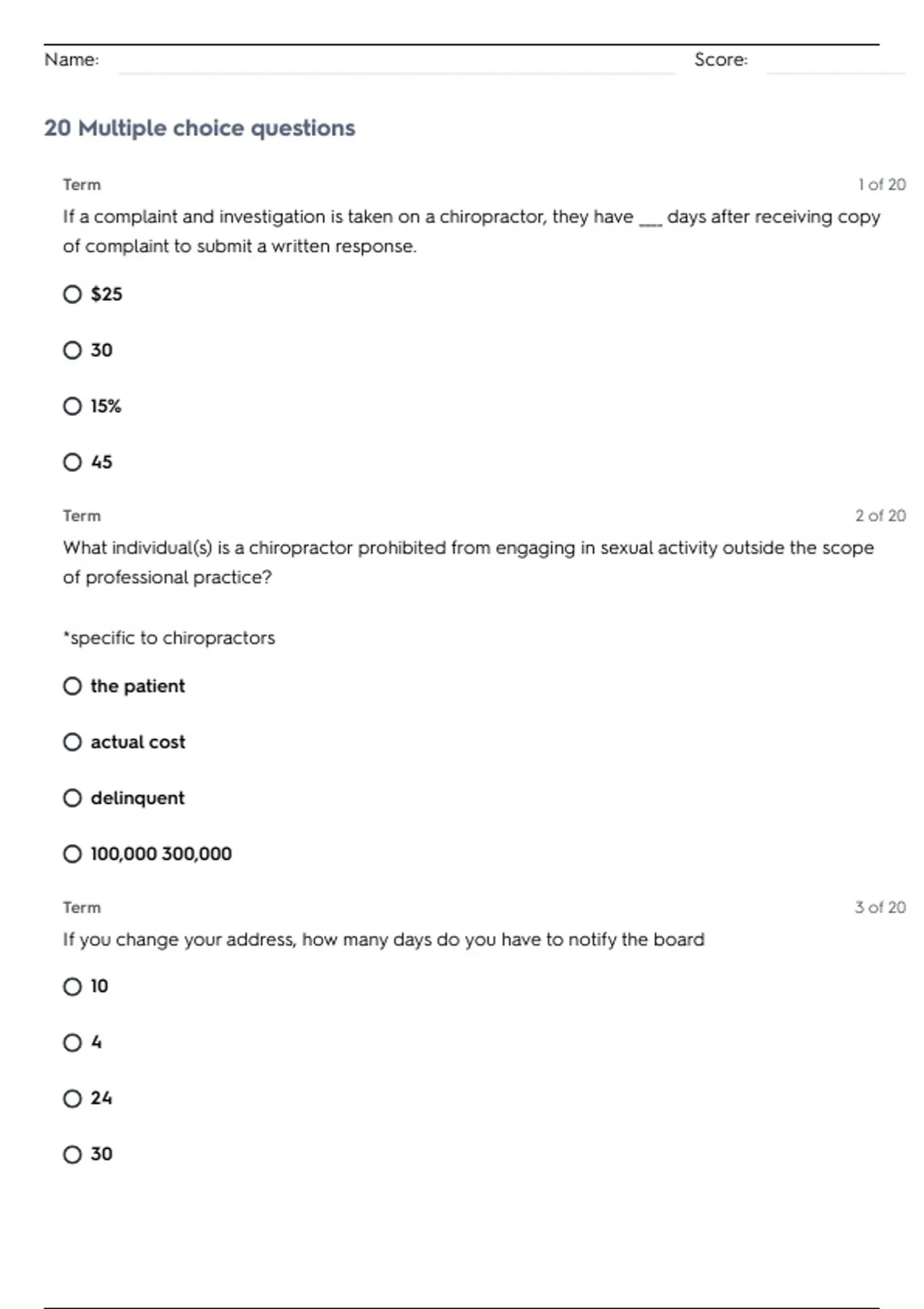 Name: Score: