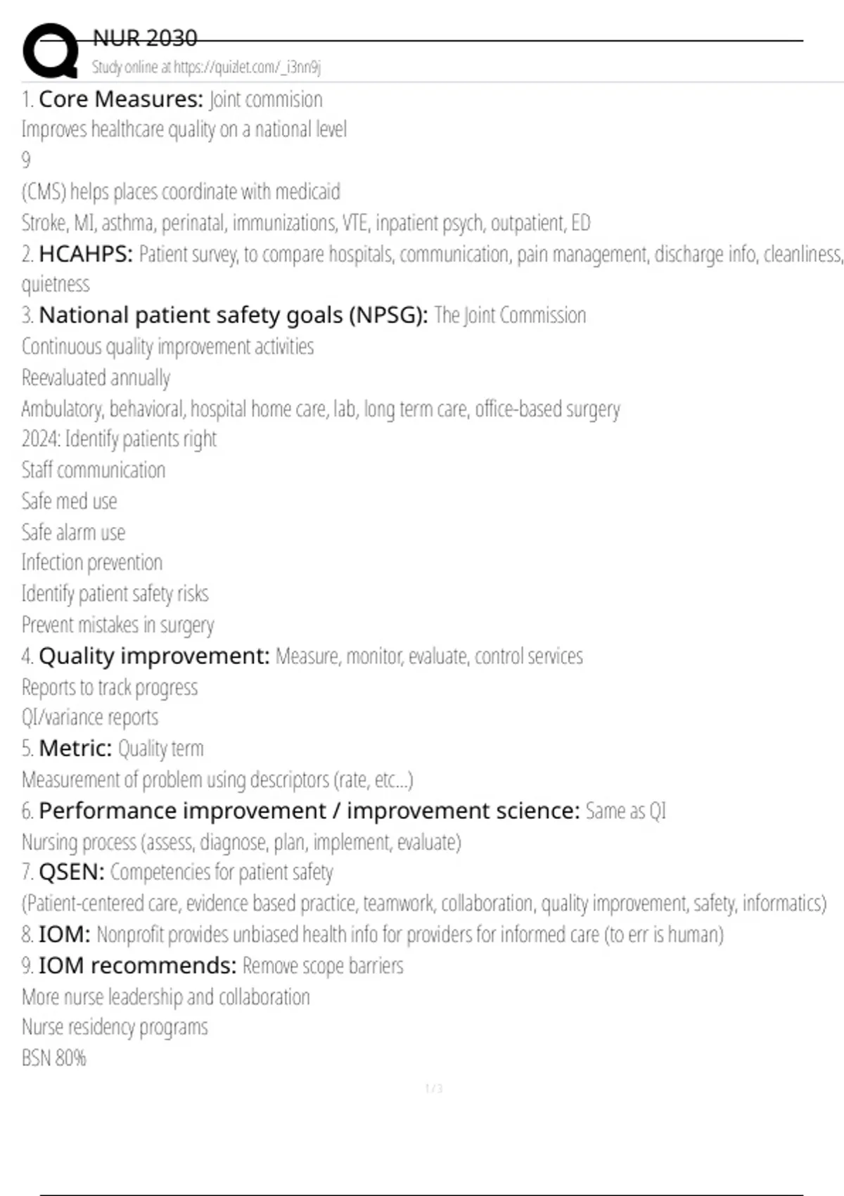 2. HCAHPS: Patient survey, to compare hospitals, communication, pain management, discharge info, cleanliness,