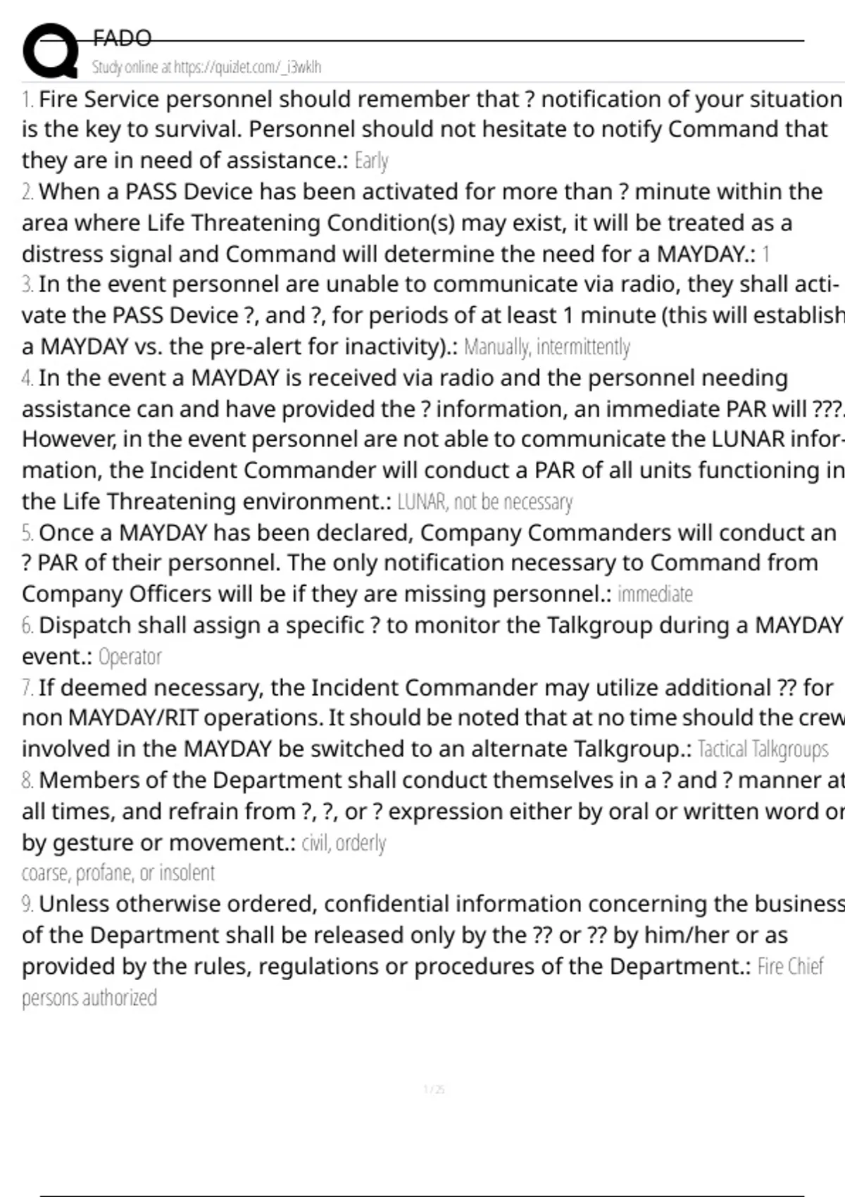 1. Fire Service personnel should remember that ? notification of your situation