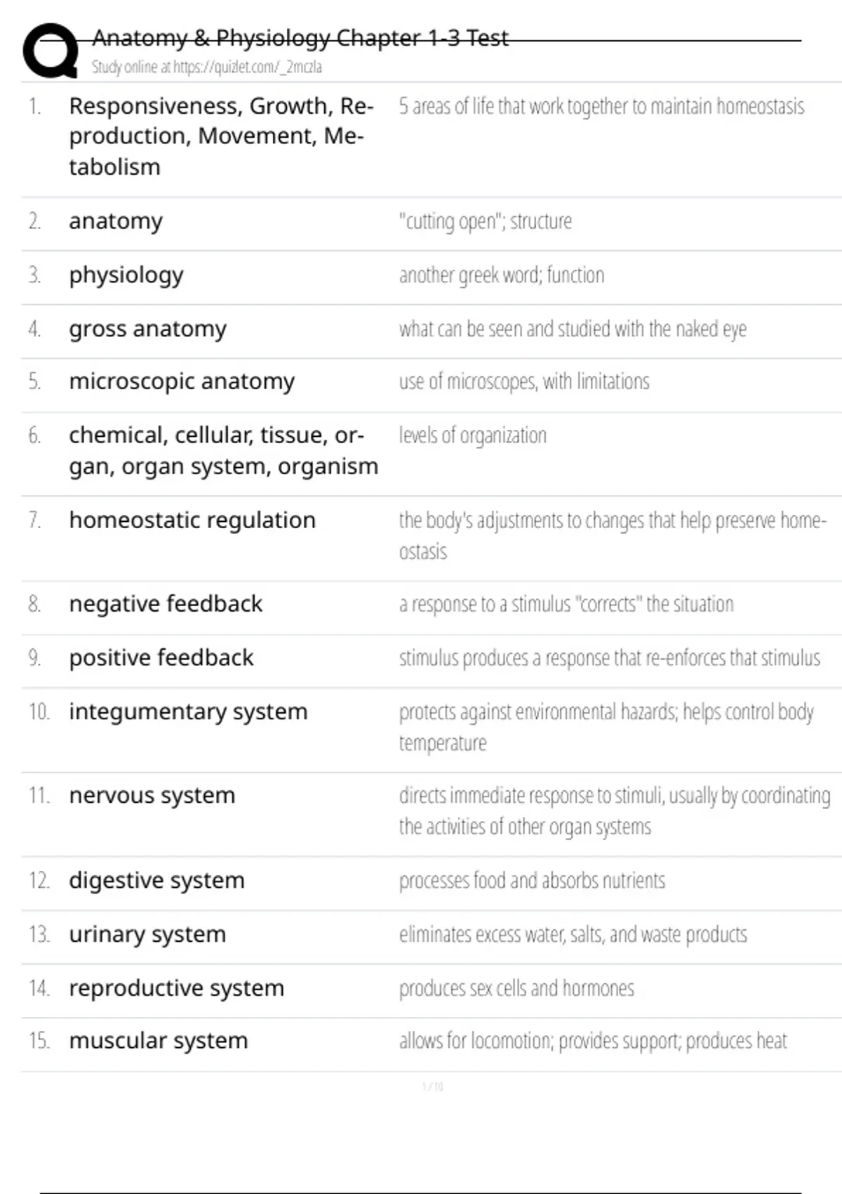 1. Responsiveness, Growth, Re- 5 areas of life that work together to maintain homeostasis