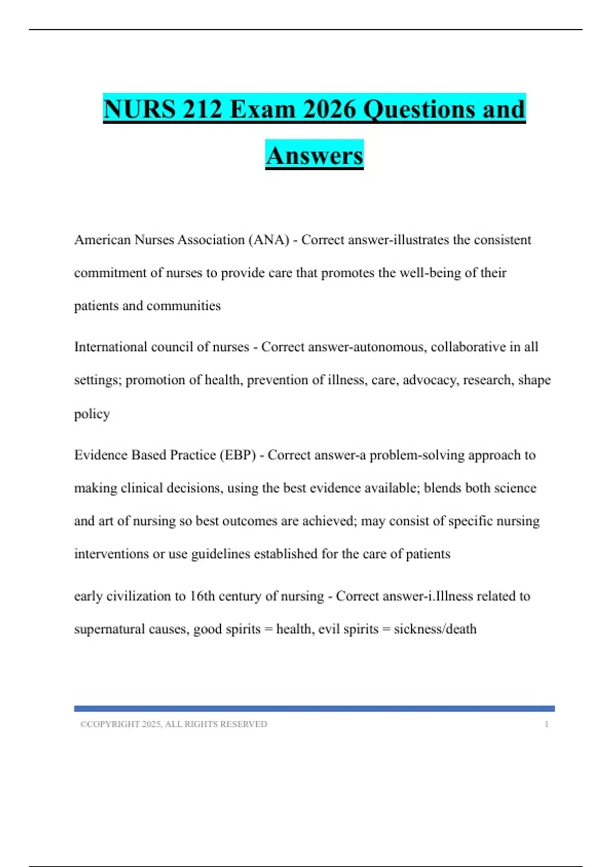 Nurs212 Bundled Tests 2026 Questions and Answers