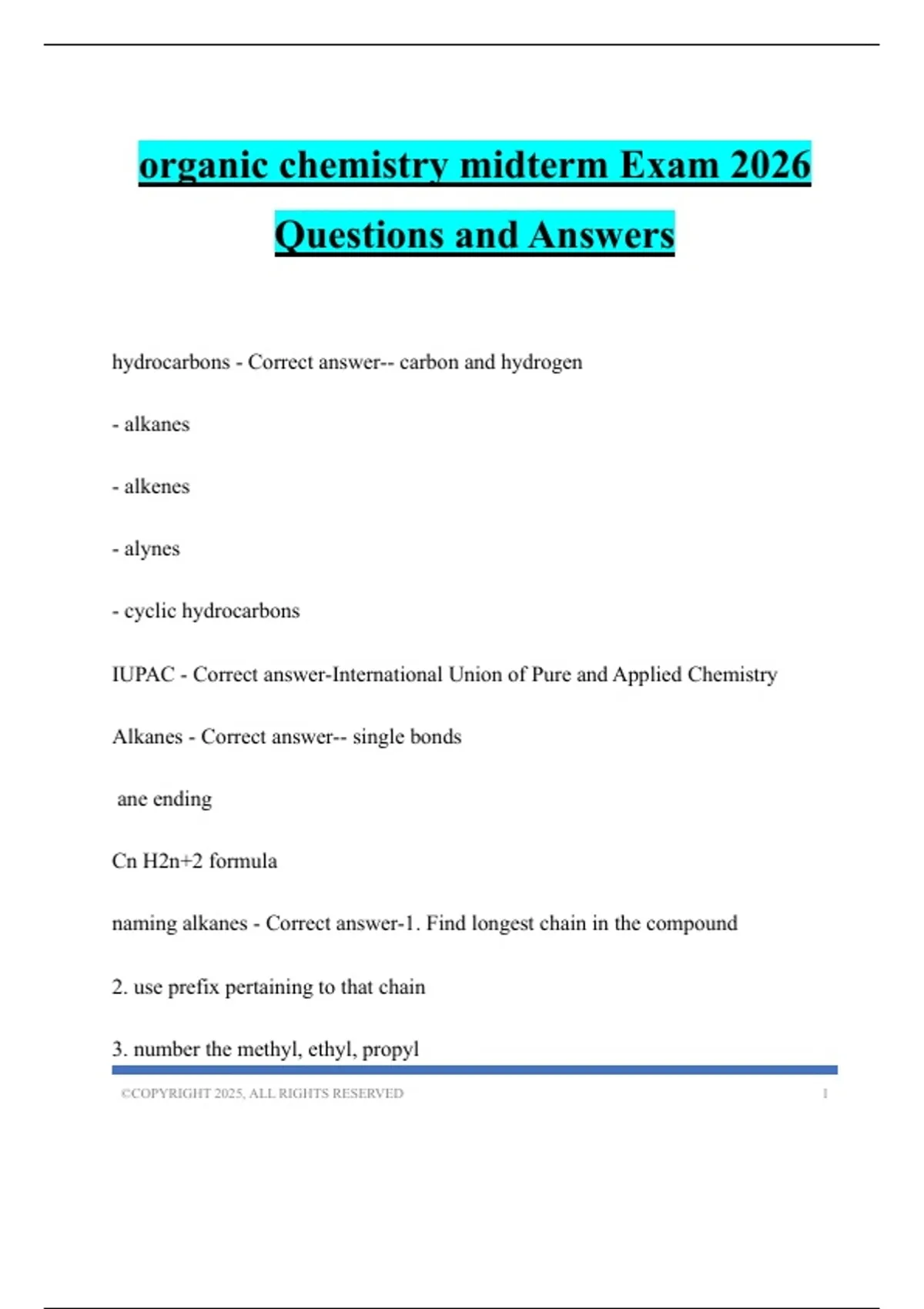 organic chemistry midterm Exam 2026 Questions and Answers
