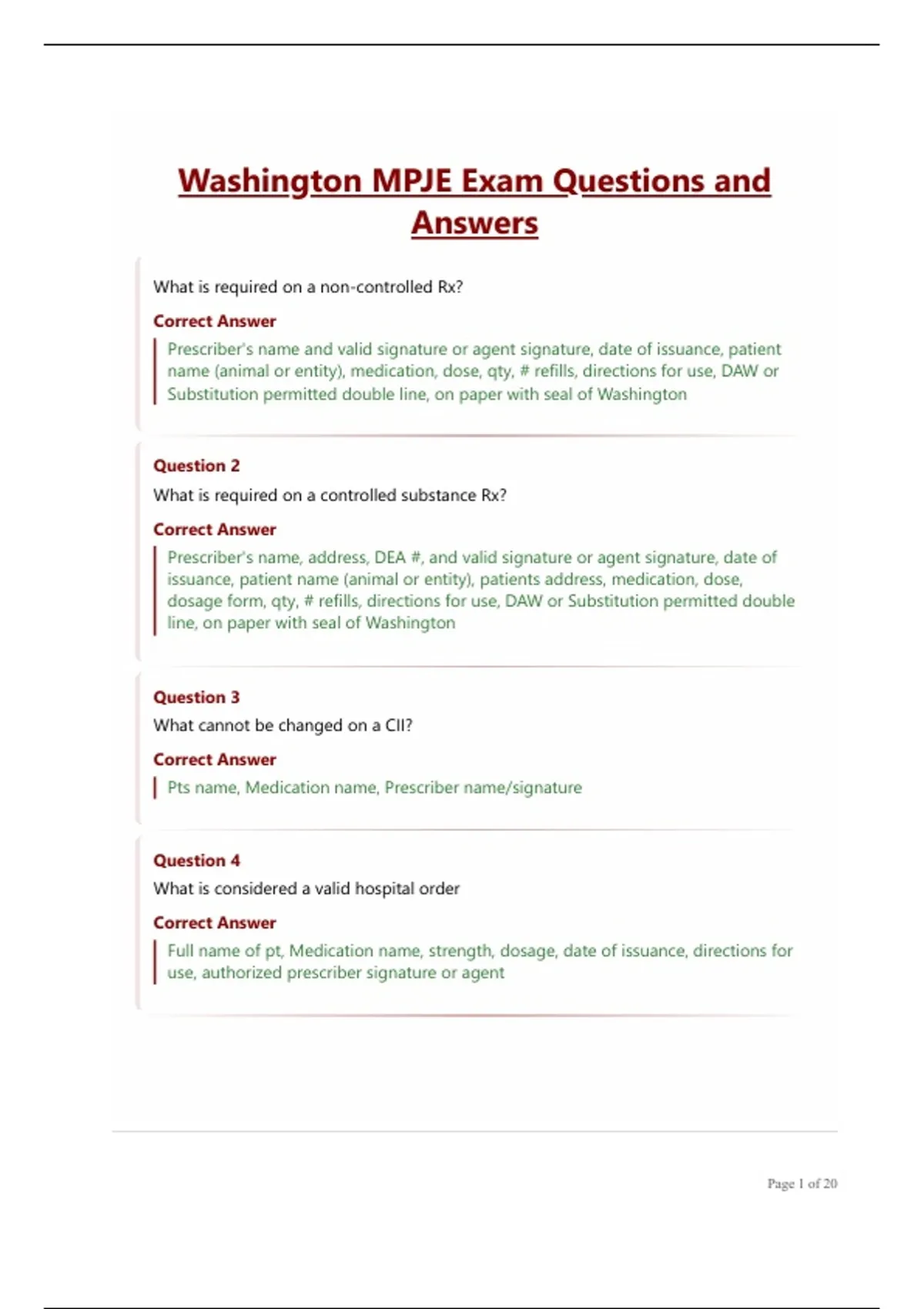 Washington MPJE Exam Questions and