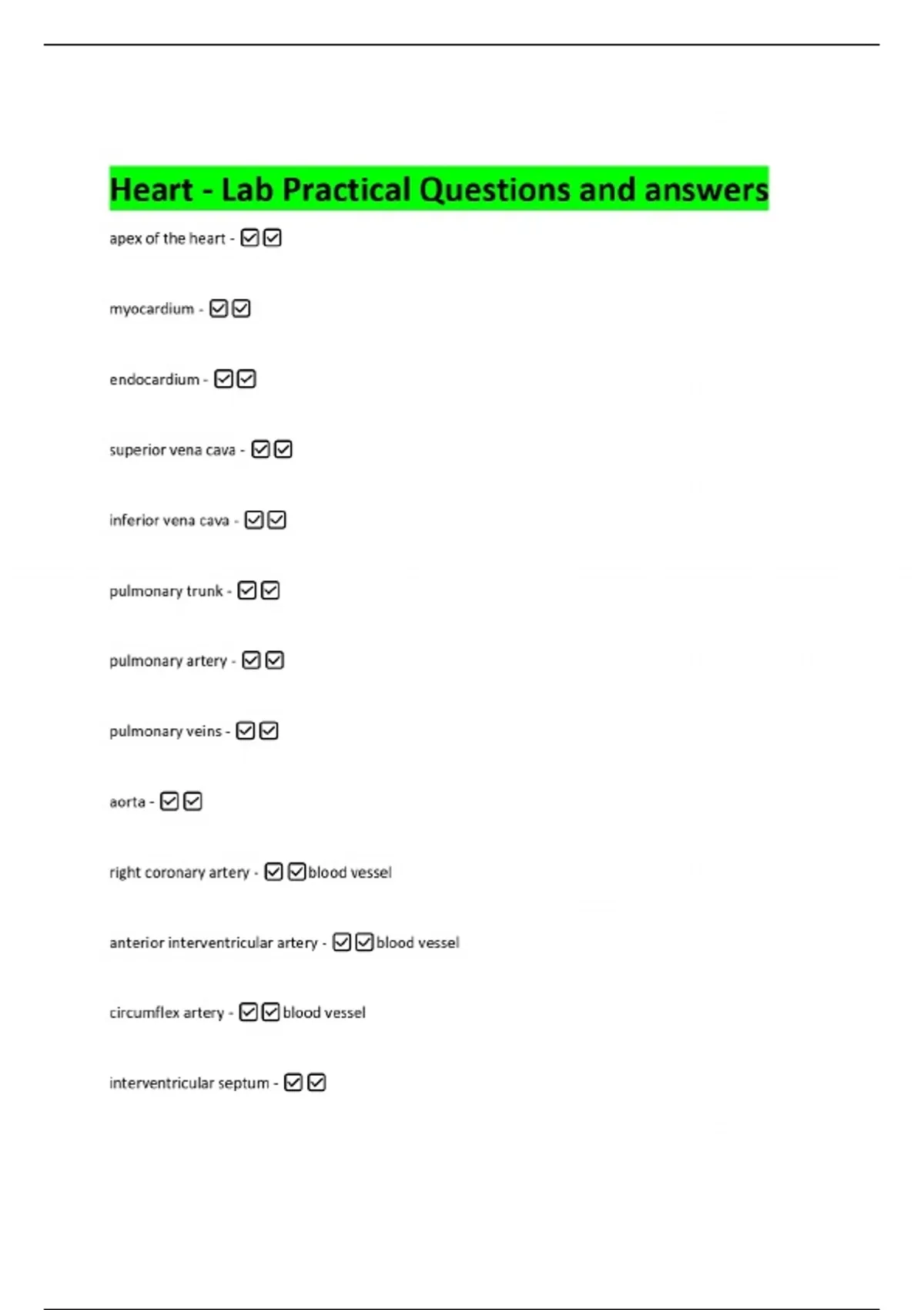 Heart - Lab Practical Questions and answers