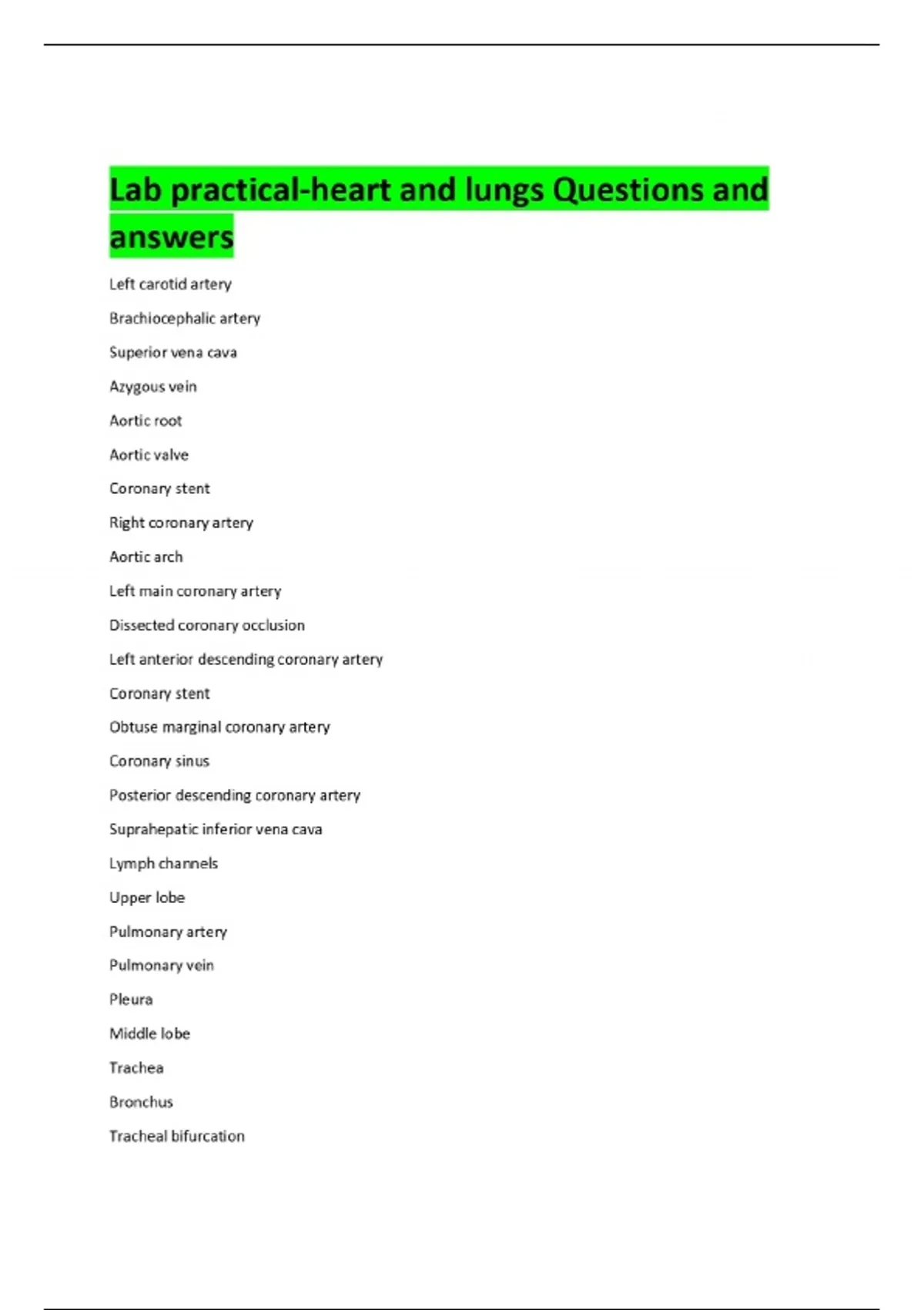 Lab practical-heart and lungs Questions and answers Left carotid artery Brachiocephalic artery Superior vena cava Azygous vein Aortic root Aortic valve Coronary stent Right coronary arte