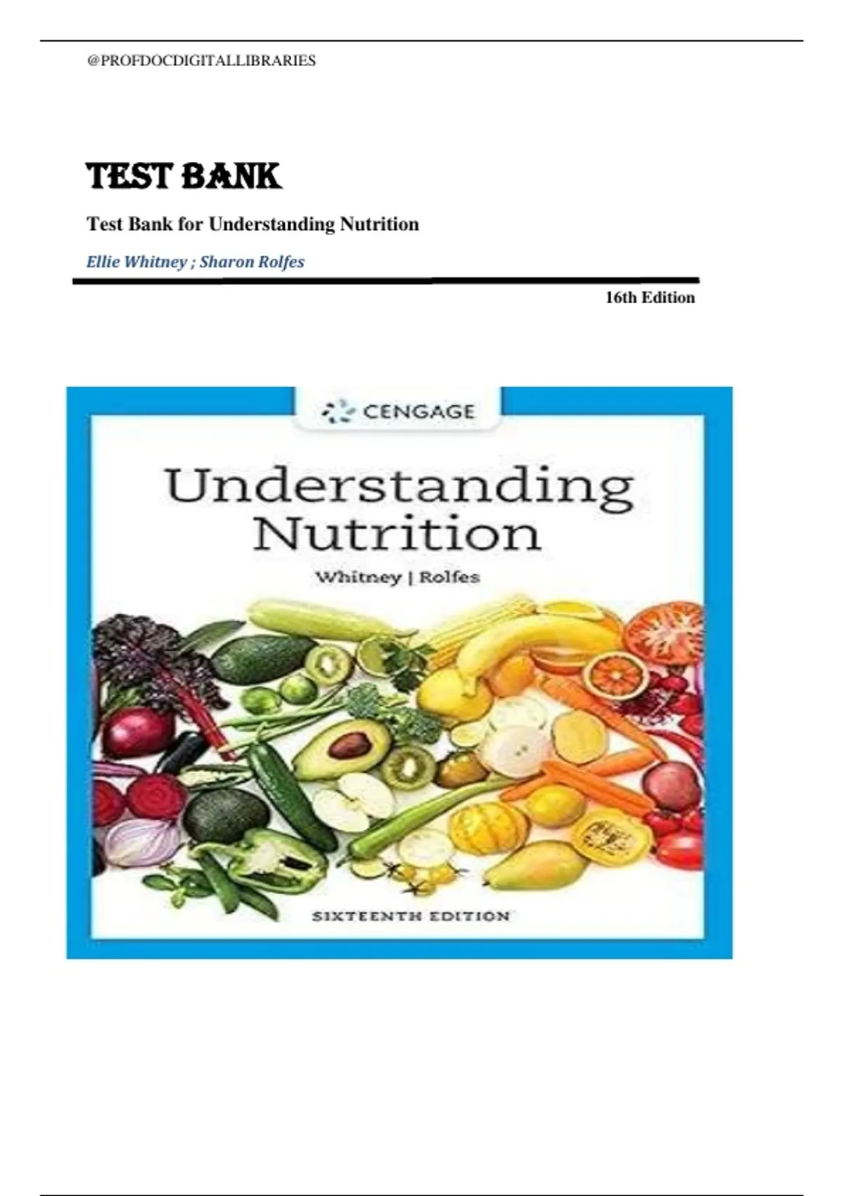 Whitney: Understanding Nutrition 16th Edition Complete Test Bank