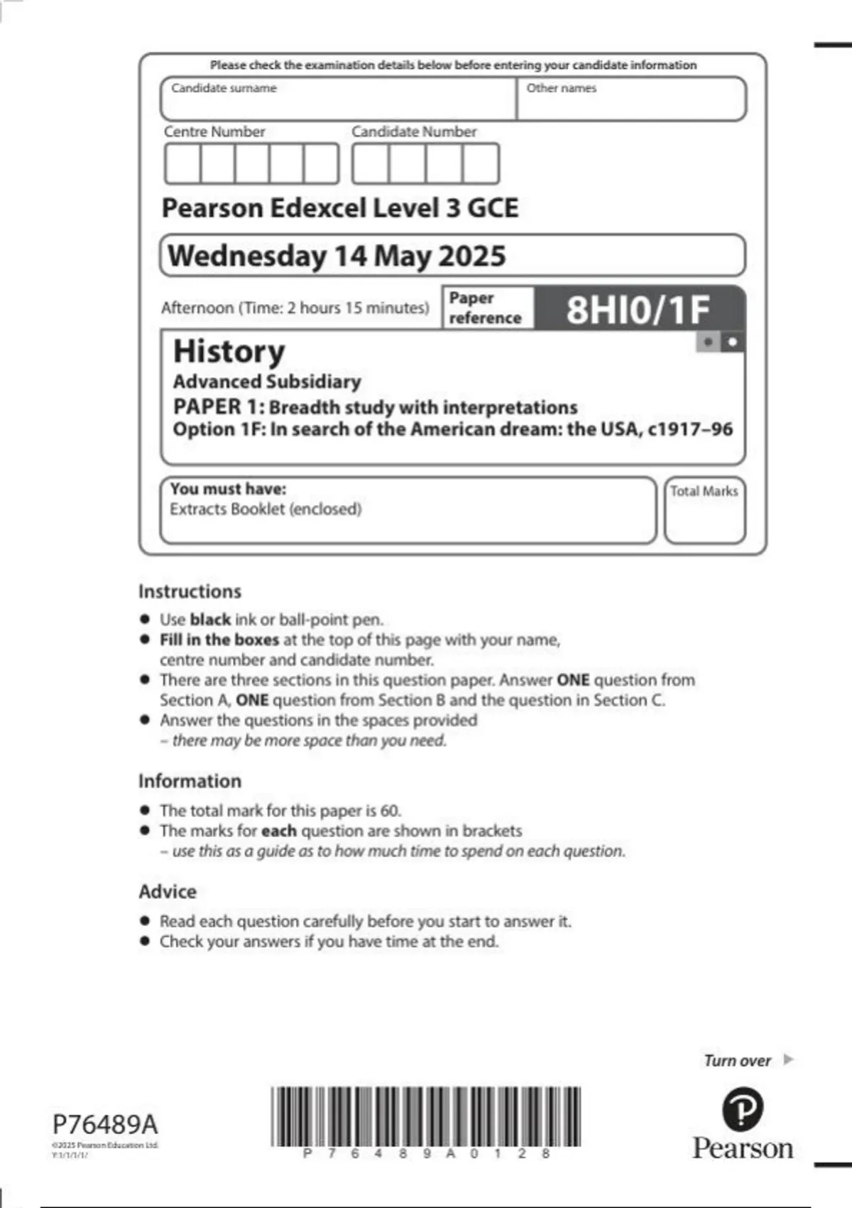 Pearson Edexcel as level History |question paper |2025| 8hi0-1f