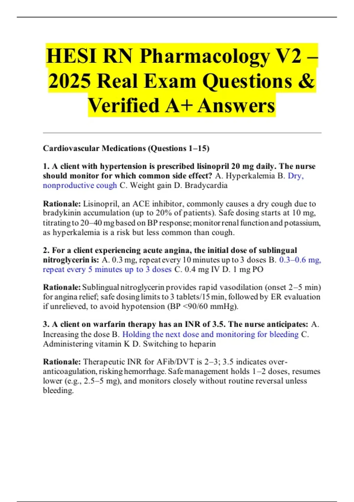 Cardiovascular Medications (Questions 1–15)