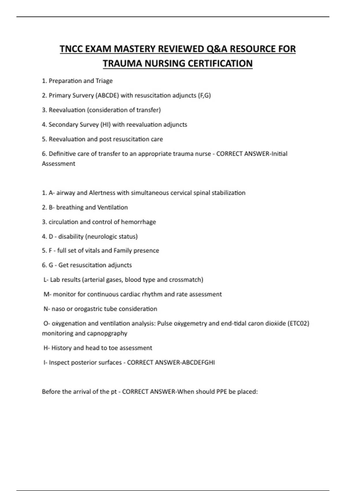 TNCC EXAM MASTERY REVIEWED Q&A RESOURCE FOR