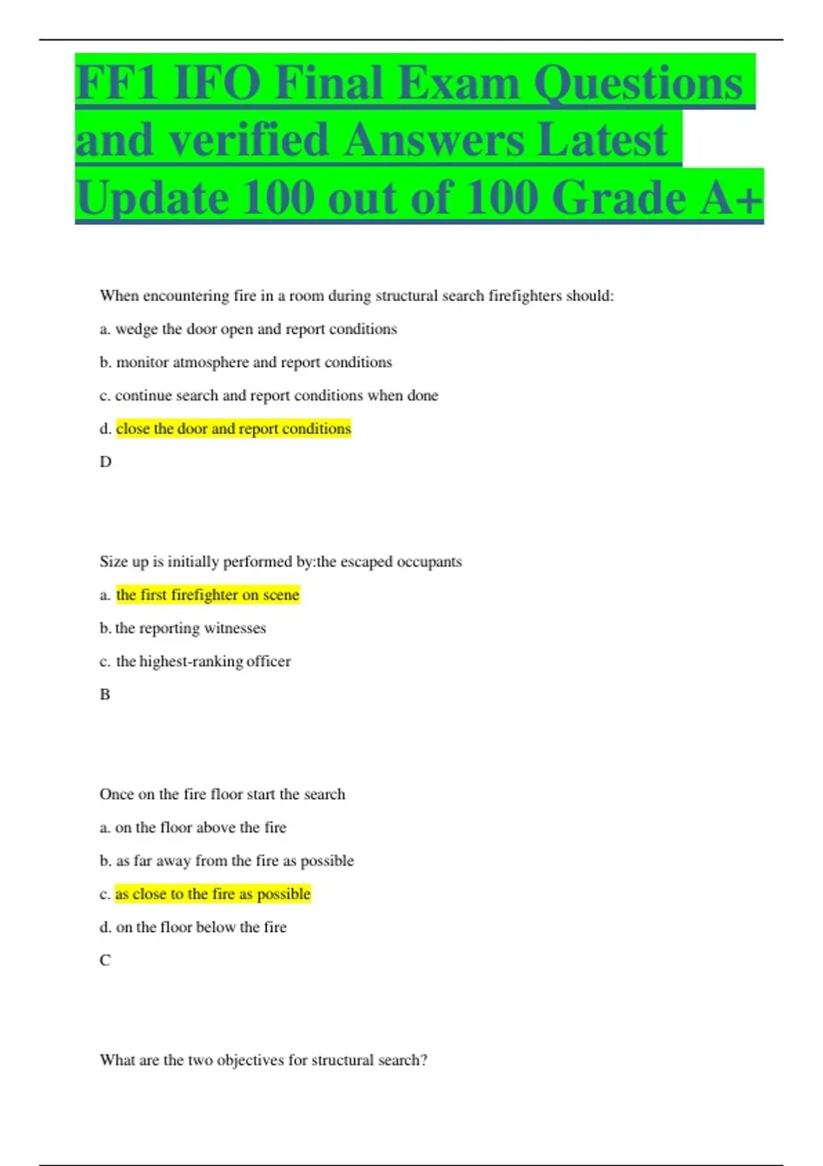 FF1 IFO Final Exam Questions