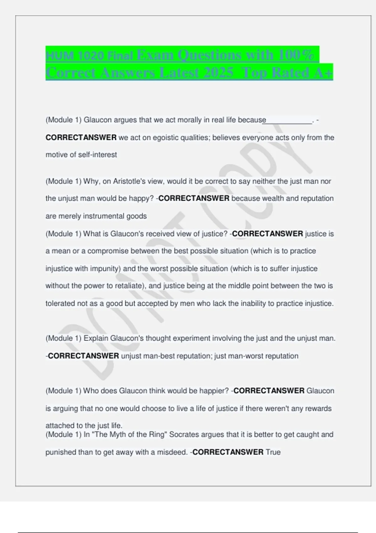 (Module 1) Who does Glaucon think would be happier? -CORRECTANSWER Glaucon