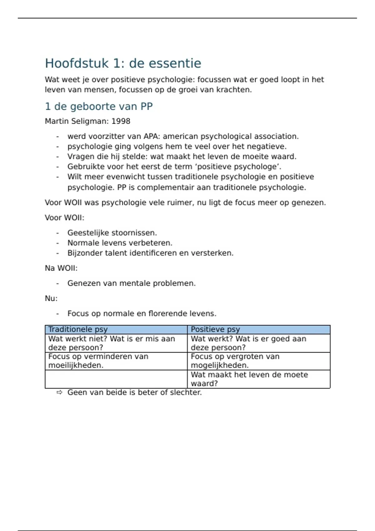 - Wilt meer evenwicht tussen traditionele psychologie en positieve