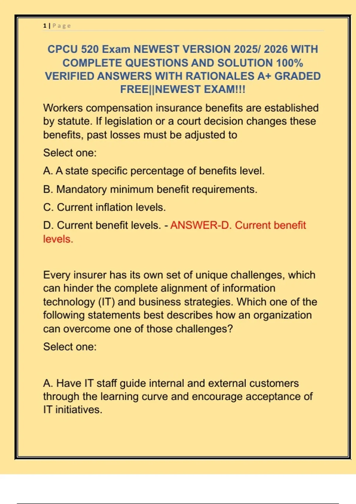 CPCU 520 Exam NEWEST VERSION 2025/ 2026 WITH COMPLETE QUESTIONS AND SOLUTION 100% VERIFIED ANSWERS WITH RATIONALES A+ GRADED FREE||NEWEST EXAM!!!