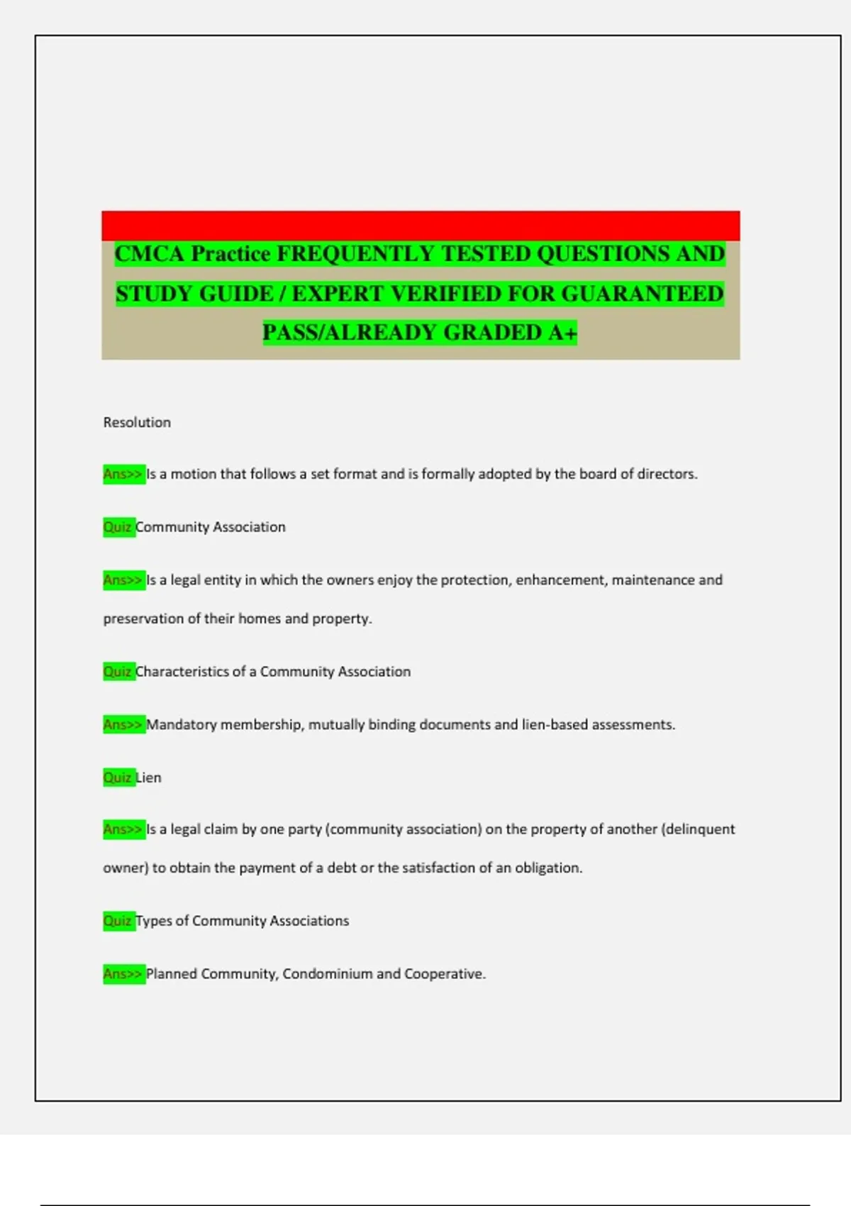 STUDY GUIDE / EXPERT VERIFIED FOR GUARANTEED