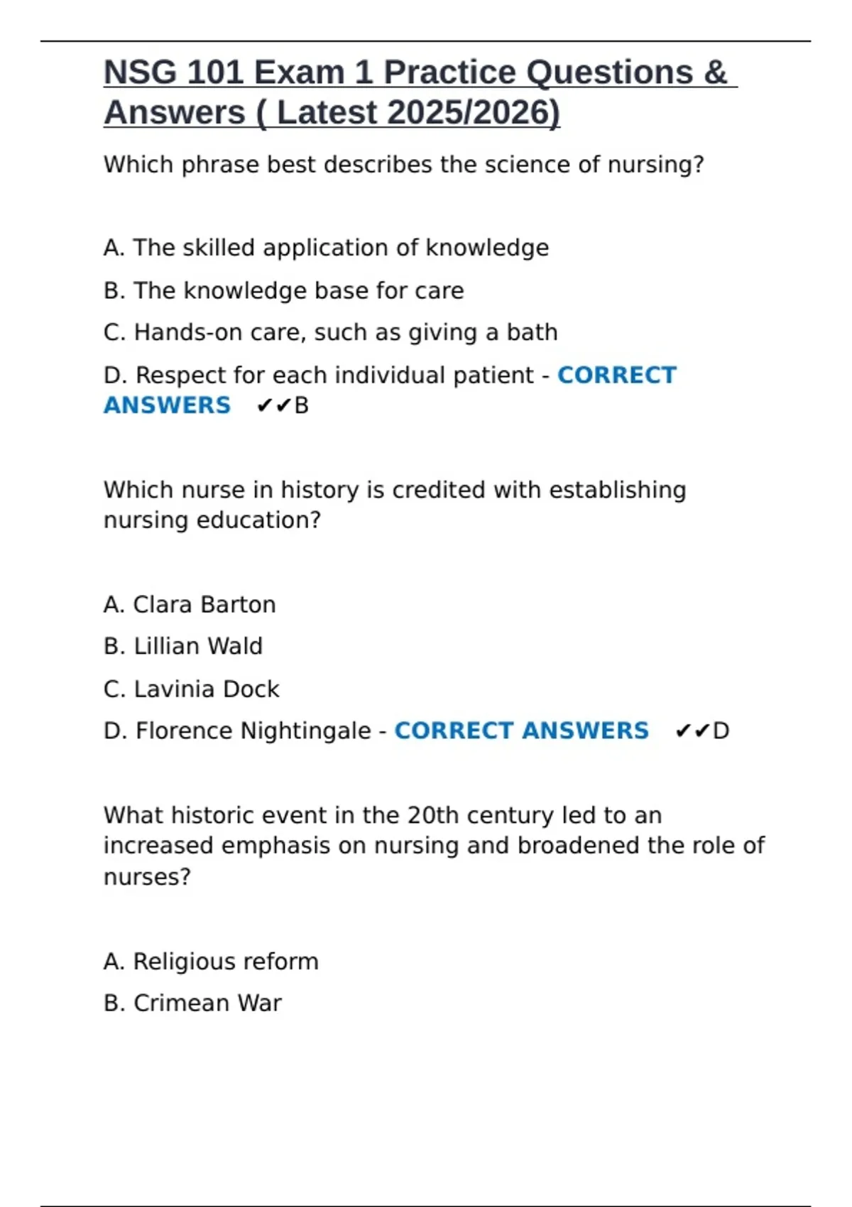 D. Florence Nightingale - CORRECT ANSWERS ✔✔D