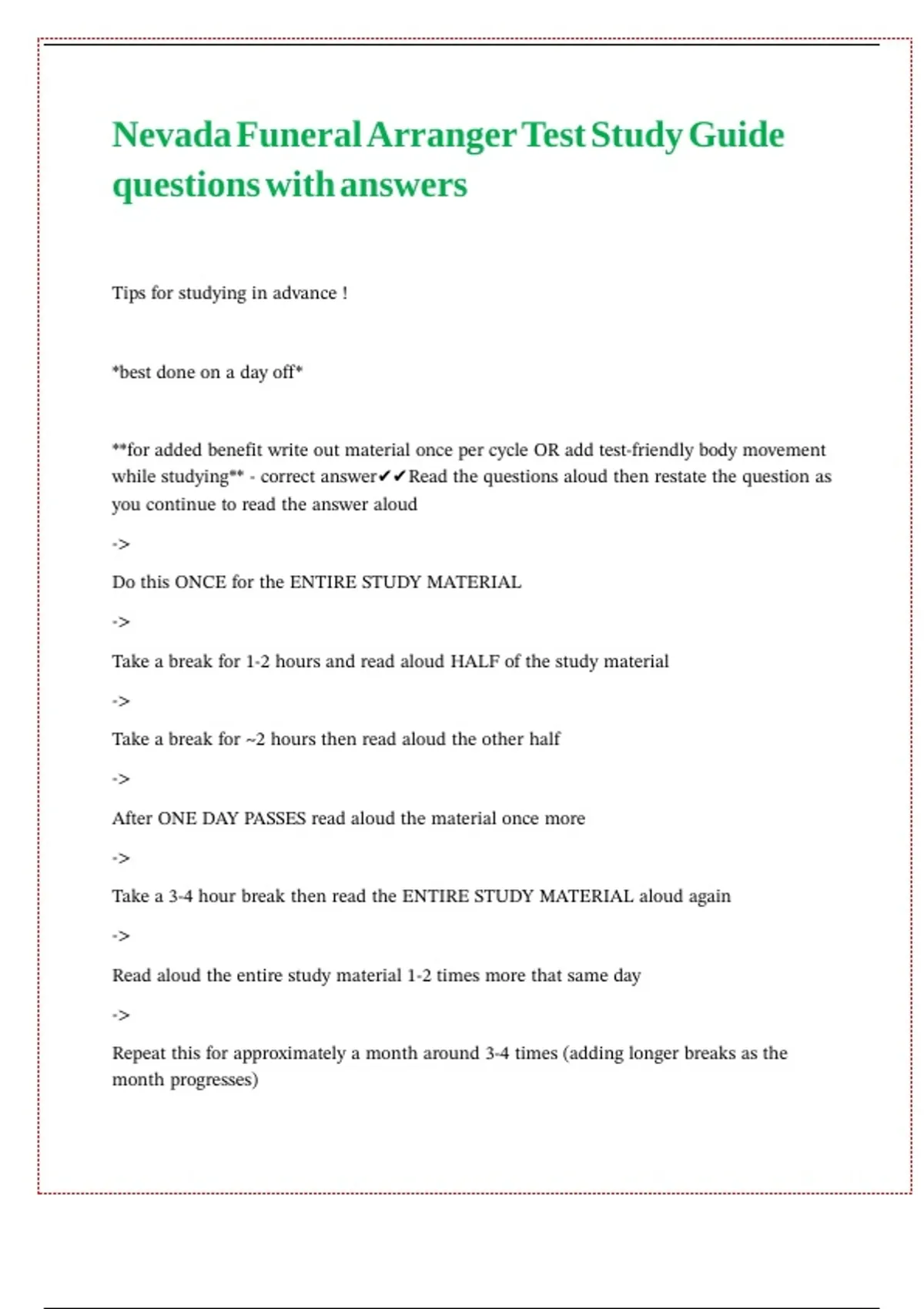 Take a 3-4 hour break then read the ENTIRE STUDY MATERIAL aloud again