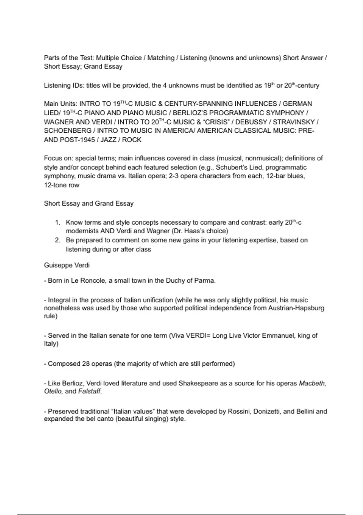 Focus on: special terms; main influences covered in class (musical, nonmusical); definitions of