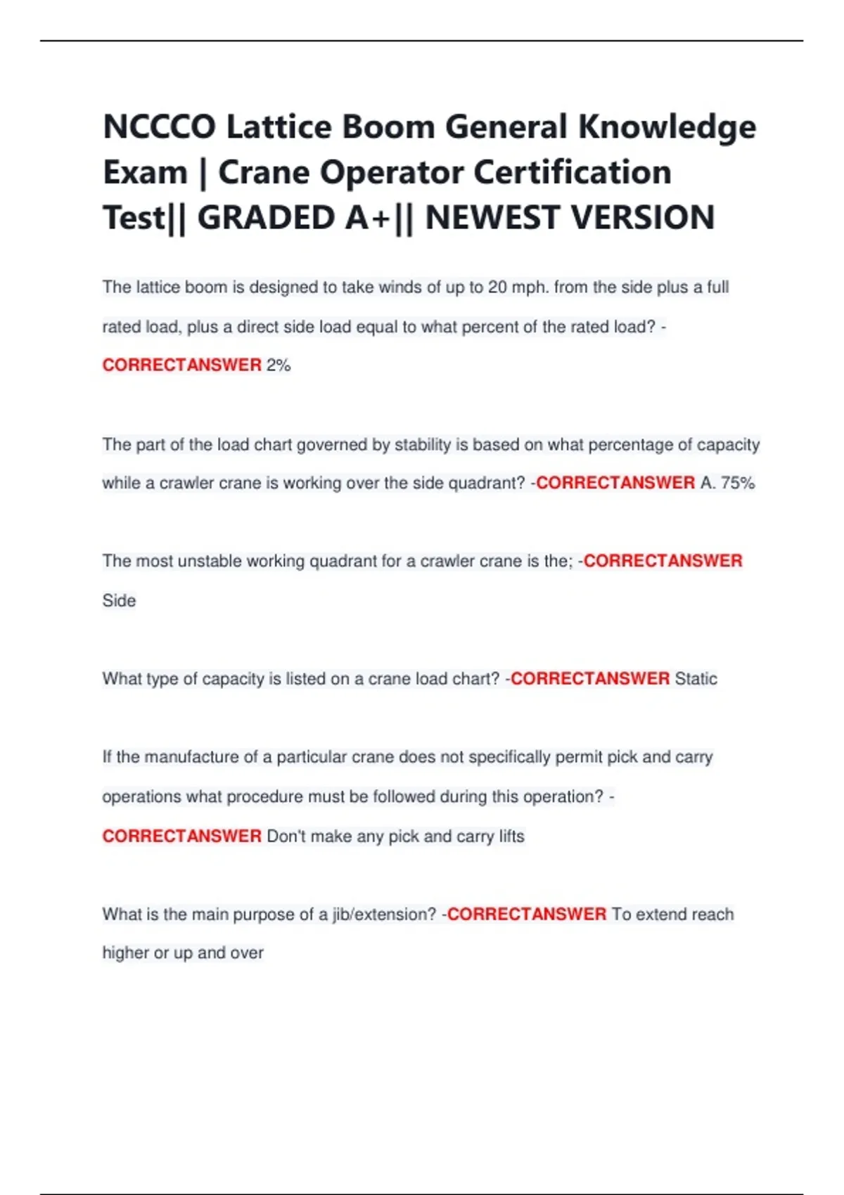 What type of capacity is listed on a crane load chart? -CORRECTANSWER Static