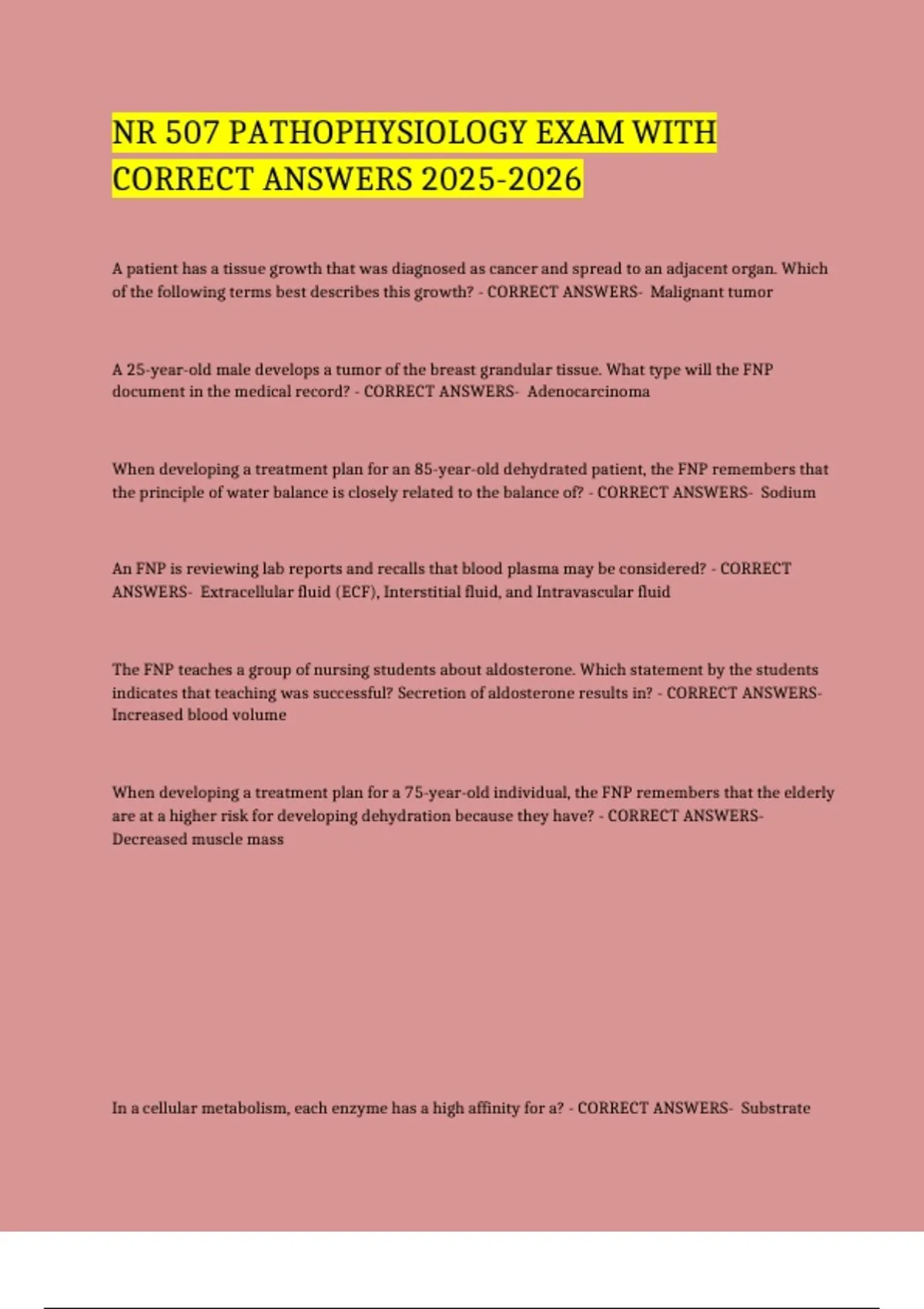 NR 507 PATHOPHYSIOLOGY EXAM WITH CORRECT ANSWERS
