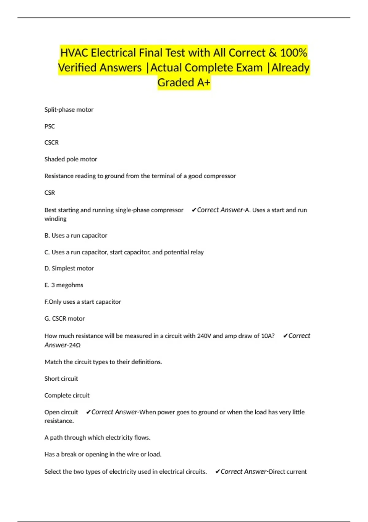 Best starting and running single-phase compressor ✔Correct Answer-A. Uses a start and run