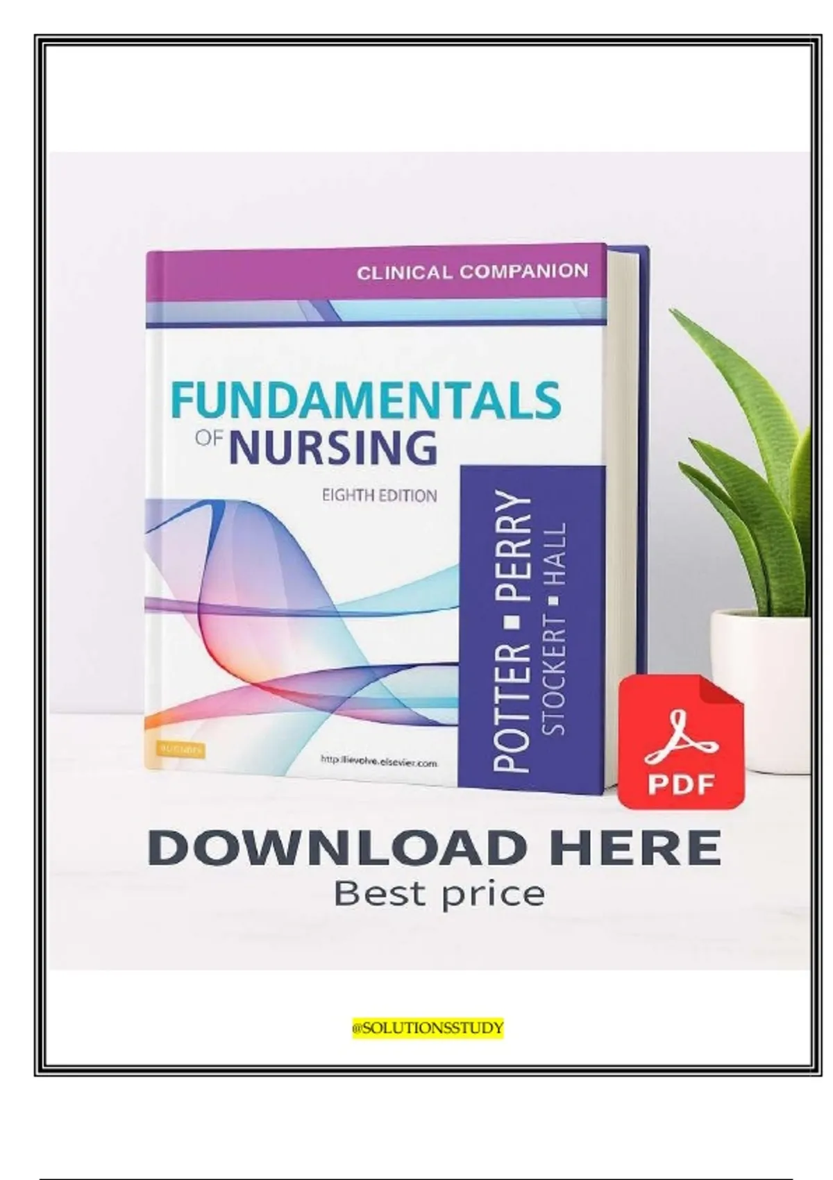 The Clinical Companion for Fundamentals of Nursing (8th Edition) is a portable, quick-reference guide that complements the main Fundamentals of Nursing textbook. It provides concise, accessible information on key nursing concepts, skills, and procedures to support clinical decision-making and patient care in real-world settings. This edition includes updated nursing diagnoses, current NANDA-I classifications, safety alerts, diagnostic testing guides, and evidence-based interventions. Each section is organized for fast lookup, covering core areas such as vital signs, medication administration, wound care, patient assessment, and documentation standards. An essential resource for nursing students and clinical practitioners, it serves as a practical tool for clinical rotations, exam preparation, and everyday practice. ① KEY DETAILS Edition: 8th Edition Type: Clinical Reference / Study Guide (PDF) Includes: Nursing diagnoses, care plans, procedures, and patient safety notes Ideal for: Nursing students, RNs, LPNs, and clinical instructors Use for: Clinical rotations, NCLEX prep, quick reference in care settings