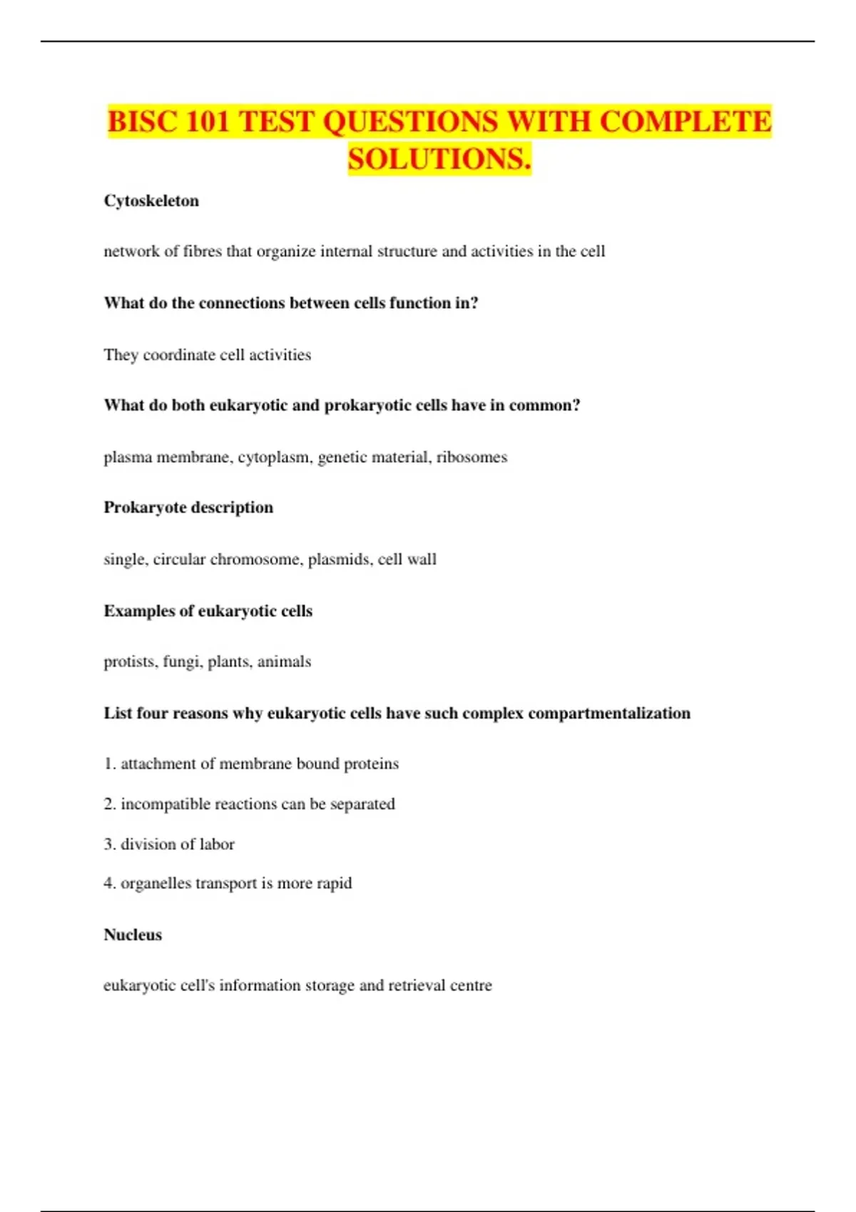 BISC 101 TEST QUESTIONS WITH COMPLETE