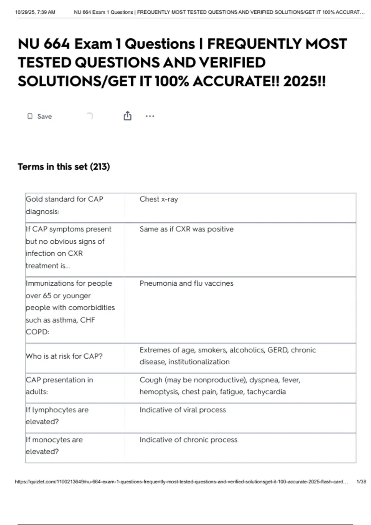 , 10/29/25, 7:39 AM NU 664 Exam 1 Questions | FREQUENTLY MOST TESTED QUESTIONS AND VERIFIED SOLUTIONS/GET IT 100% ACCURAT…